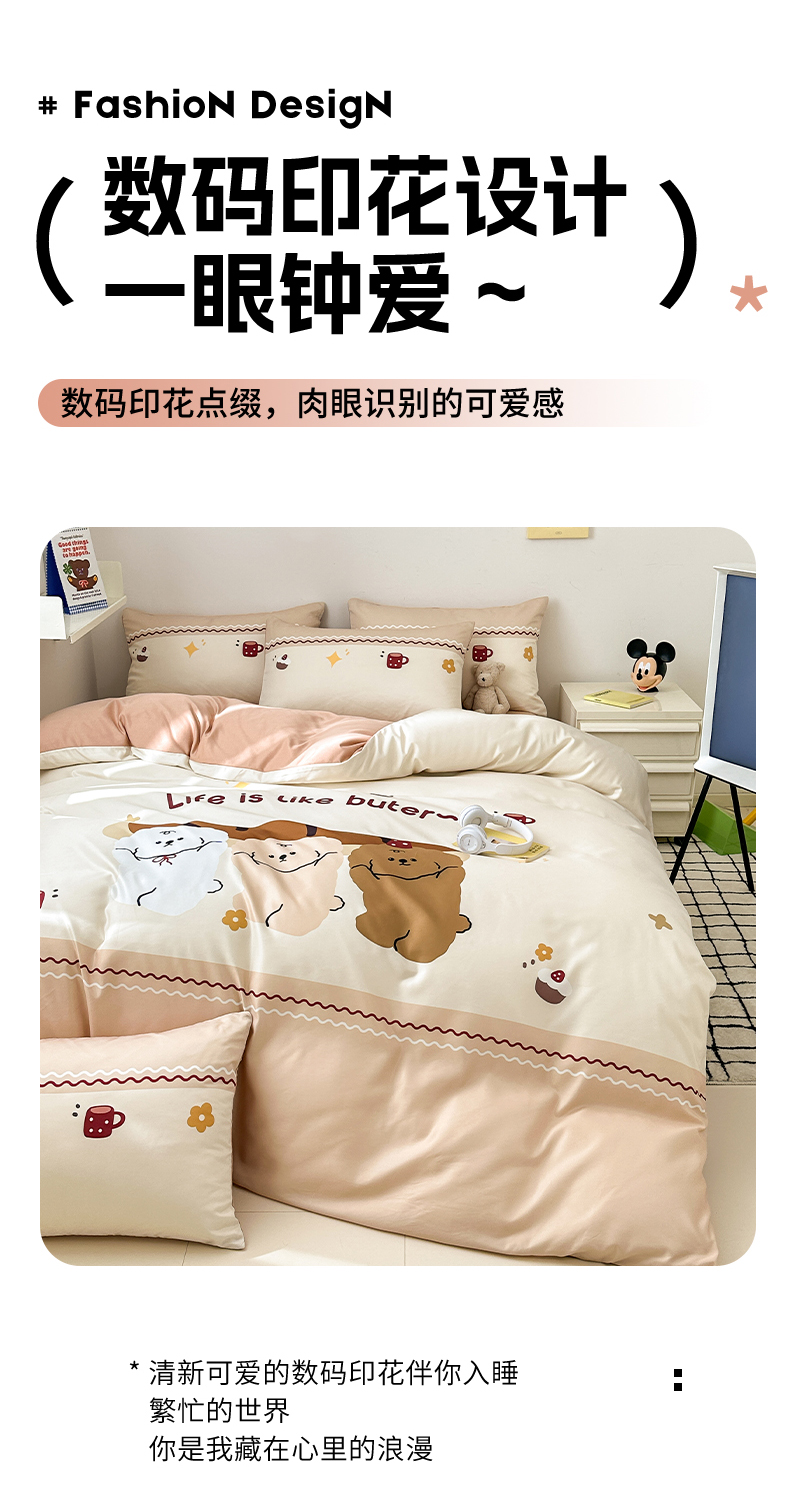 (总)摩卡(乐趣) 2025新款现代简约网红款四季棉四件套,电机熊,多巴胺,黑白迪,机器熊,咔芬,流沙,萌迪,萌熊队长,七彩熊,棋盘格公仔,太阳花粉,涂鸦熊,星空,熊头白,熊仔白,熊仔桔,熊仔咖
