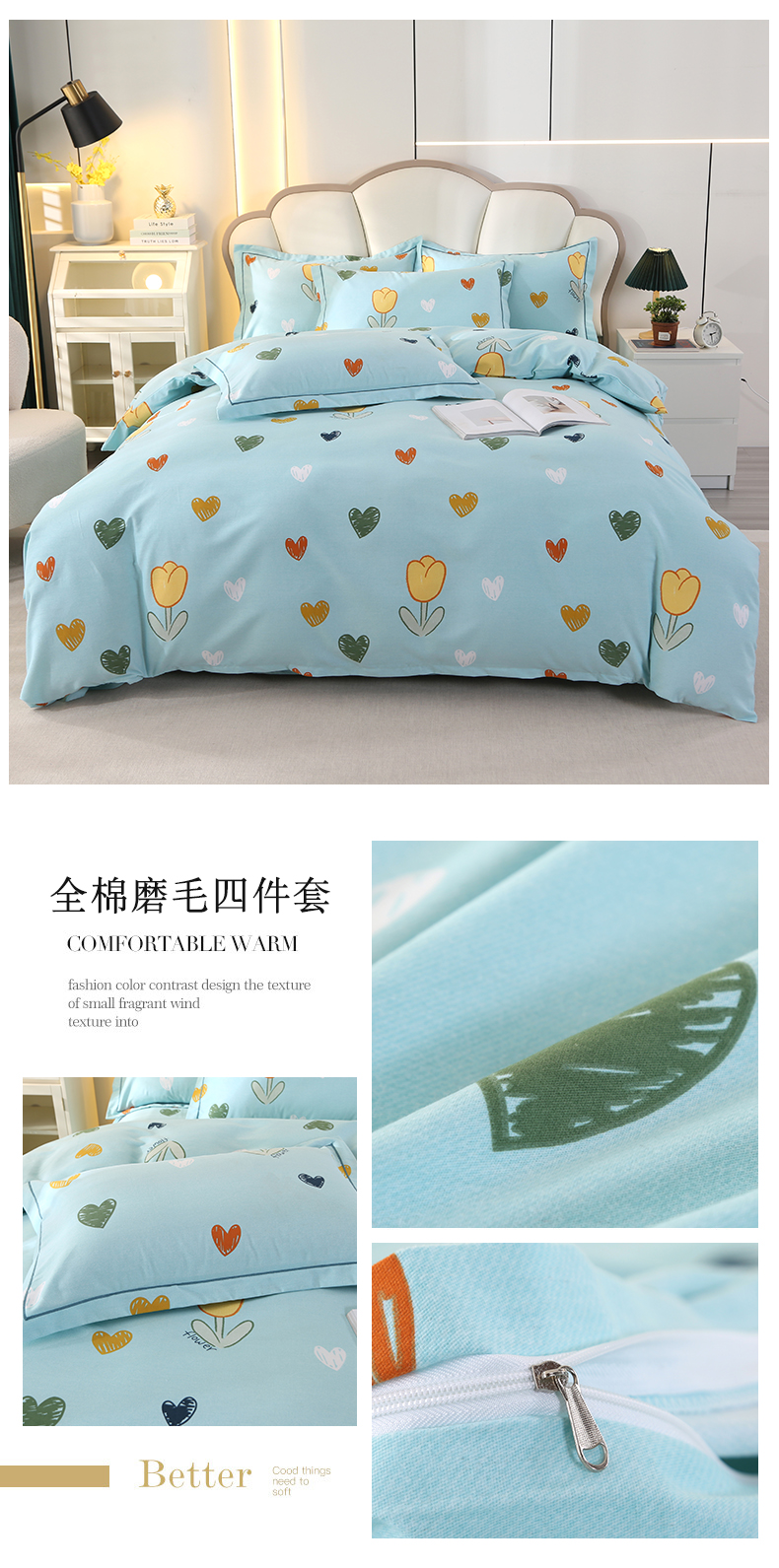 商品名称:橘姿 2024升级喷气磨毛四件套纯棉四件套加厚直播 花影心恋