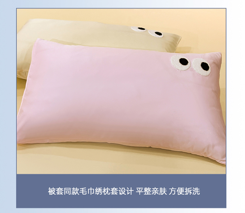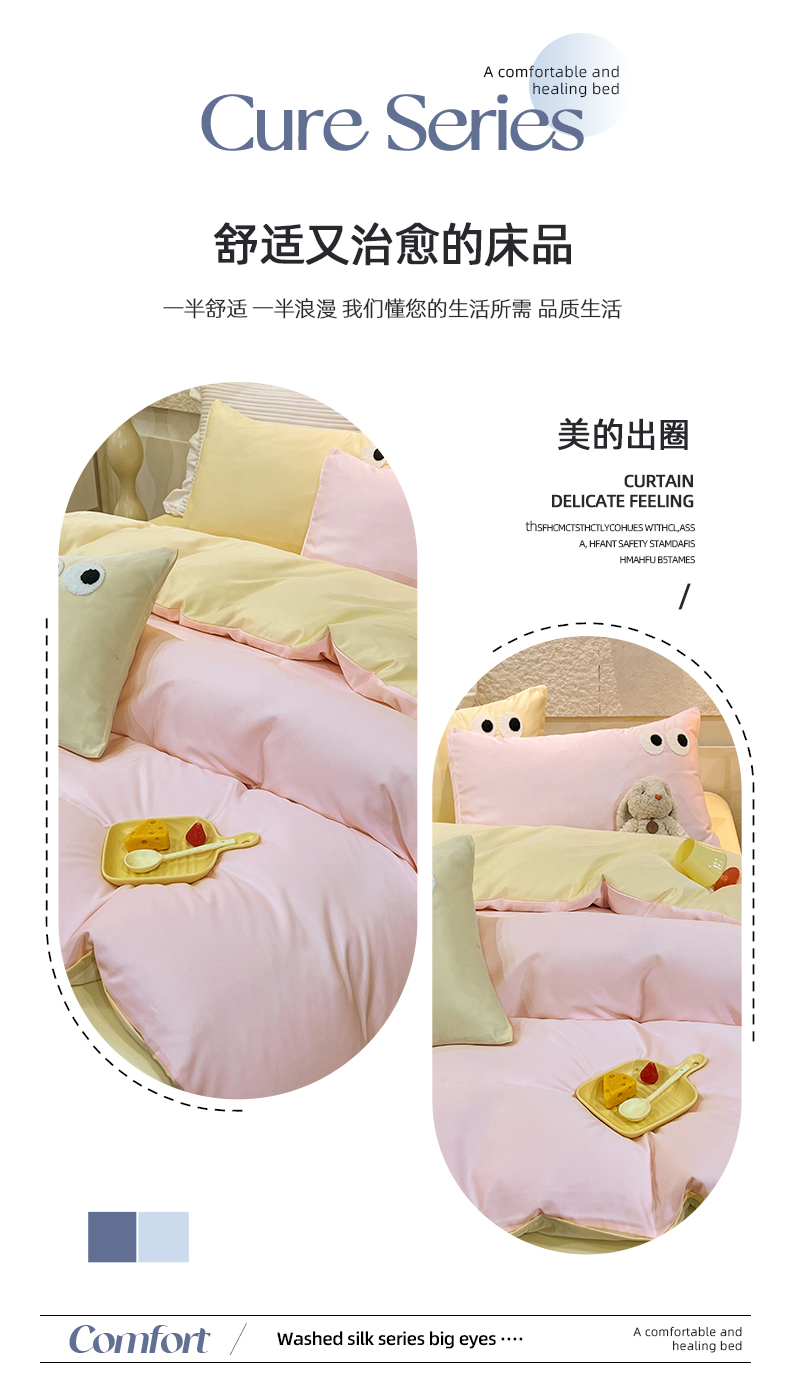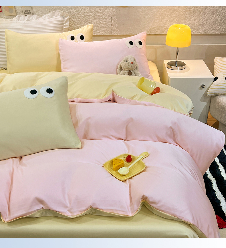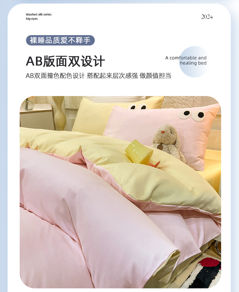 商品名称:艾米家居 2025新款水洗真丝大眼睛系列四件套 粉+黄