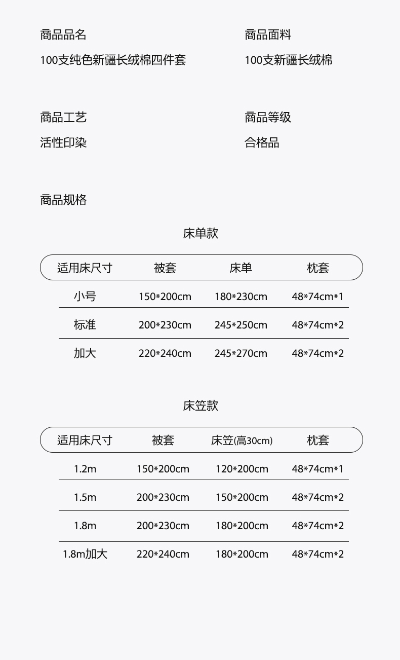 1.8m被套加大床笠款四件套 | ¥198.00 |