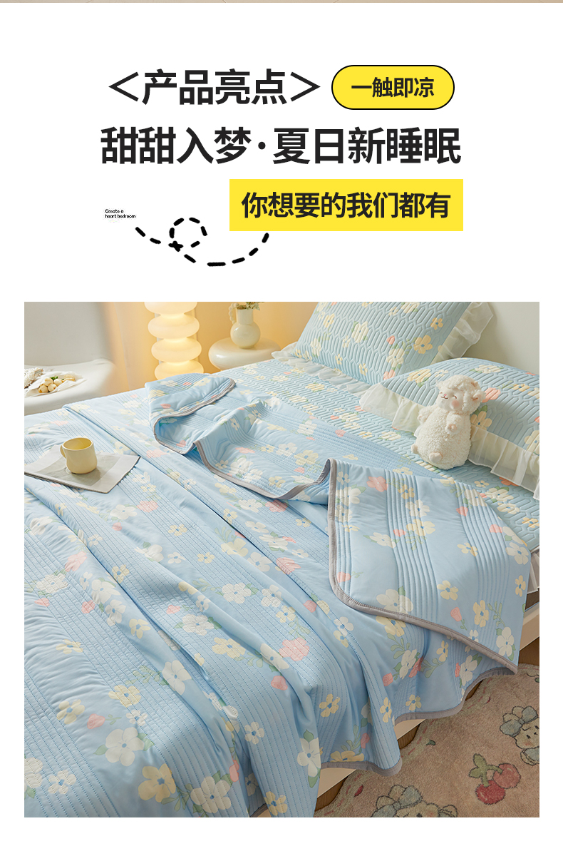 (总)牛魔王 2025新款冰丝凉感丝夏被,缤纷花季,动物园,黑色波点,花花格调,花花世界,吉祥物,小奶猫,银杏叶,郁金香,百里香-玉绿,草木纷飞-黄,花朵熊-米,南瓜-绿,草莓熊,春意盎然,梦幻花园