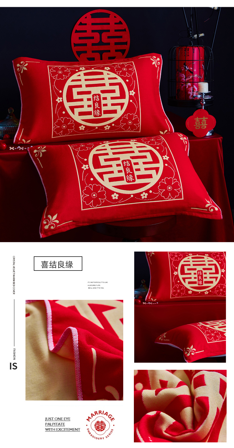 (总)美宜家 2025新款四层全棉纱布婚庆枕巾枕套枕头,百年好合,吉祥如意,喜上眉梢,喜气洋洋,喜结良缘,喜结连理,心心相印,欢欢喜喜,浪漫爱情,双喜临门,真爱永恒,花好月圆