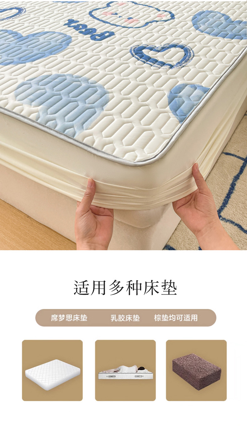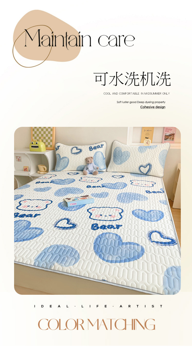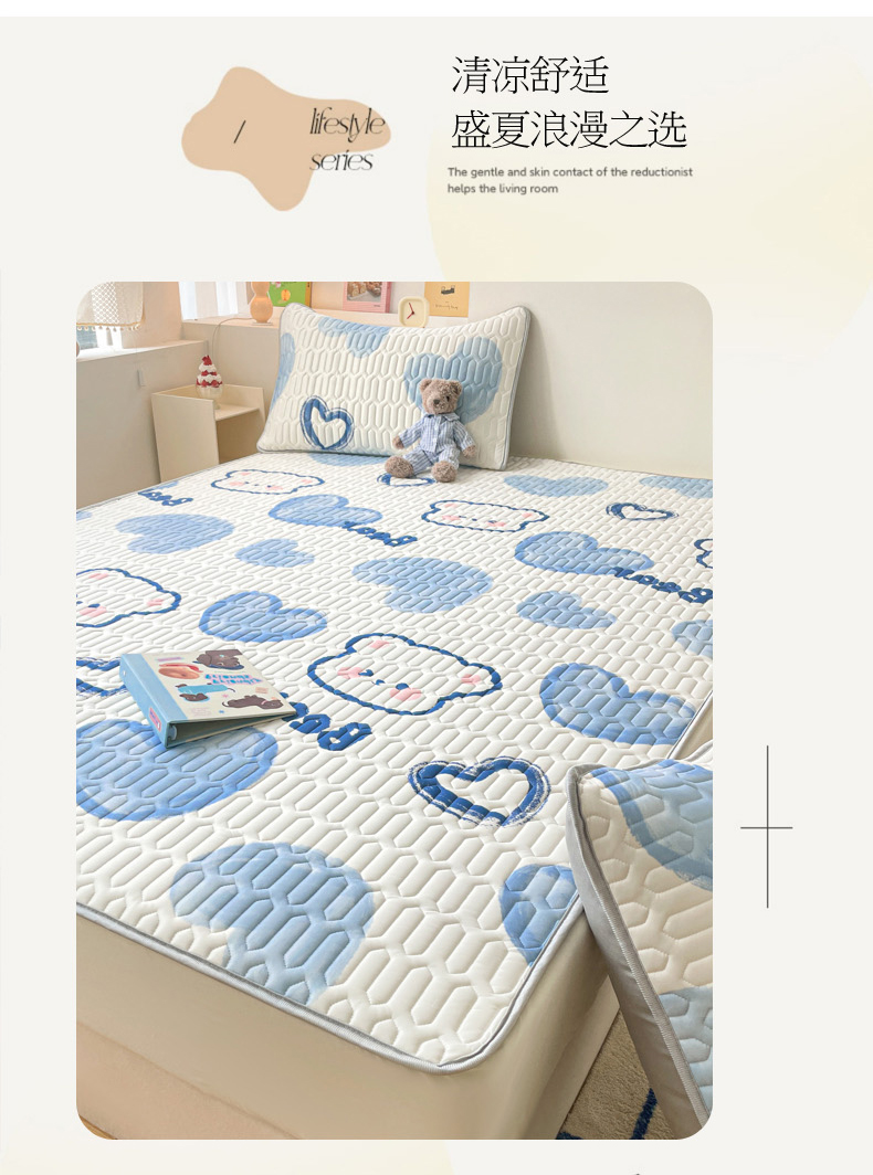 商品名称:2024新款印花小清新床笠款乳胶凉席系列 爱心小熊