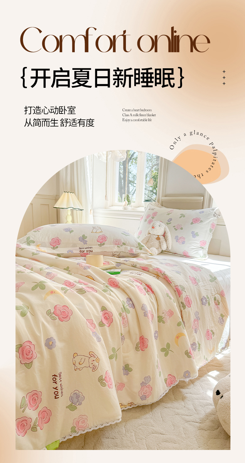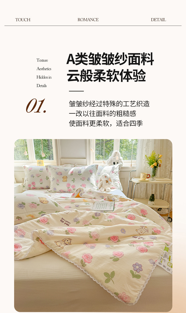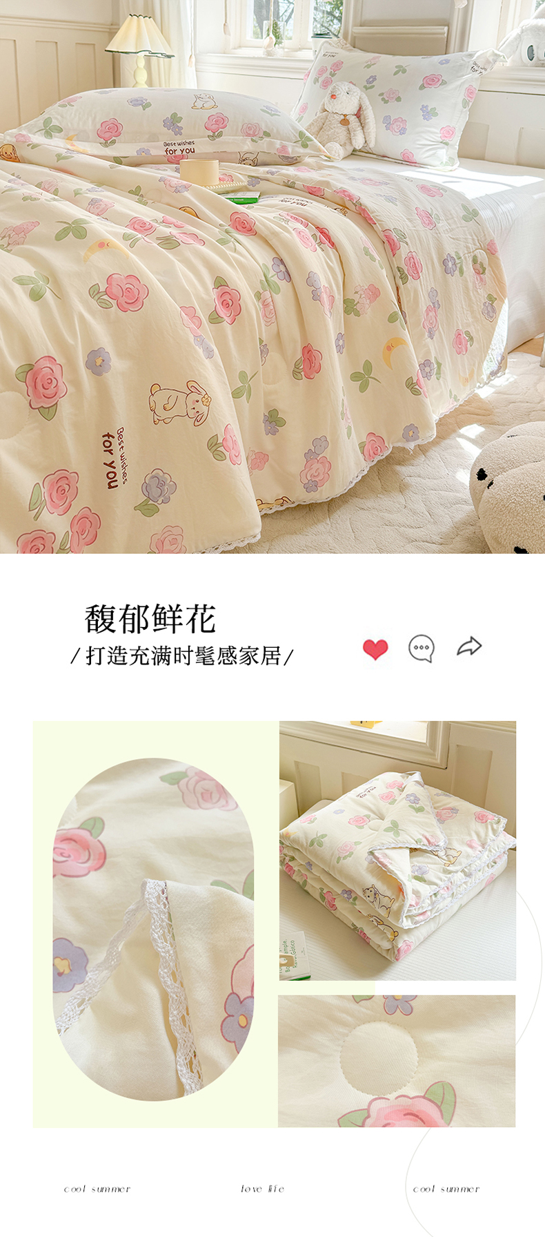 创优家纺 2025新款A类皱皱纱小花边夏被 馥郁鲜花