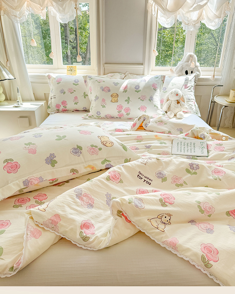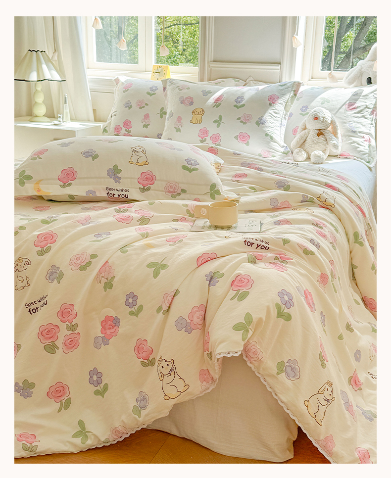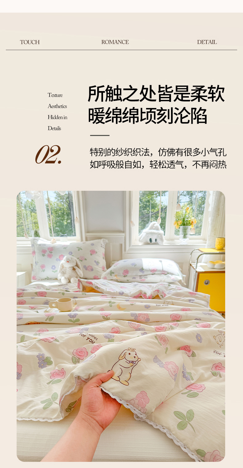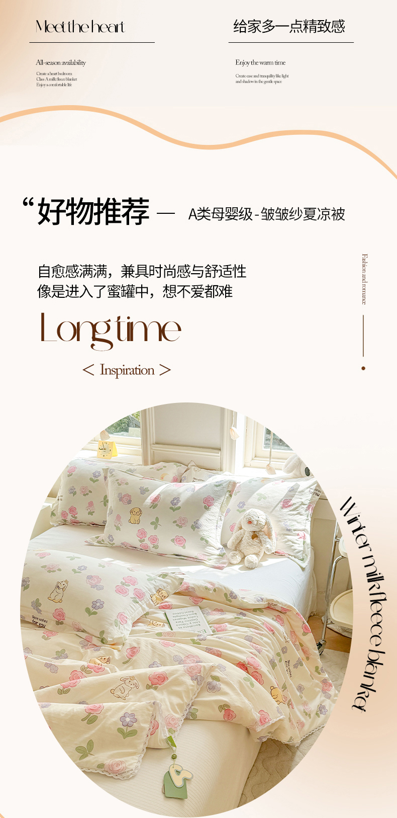 创优家纺 2025新款A类皱皱纱小花边夏被 馥郁鲜花