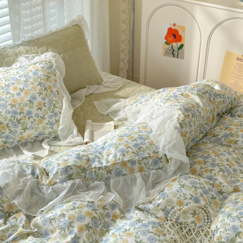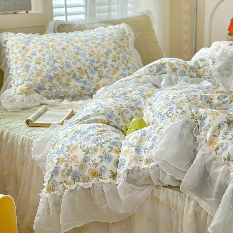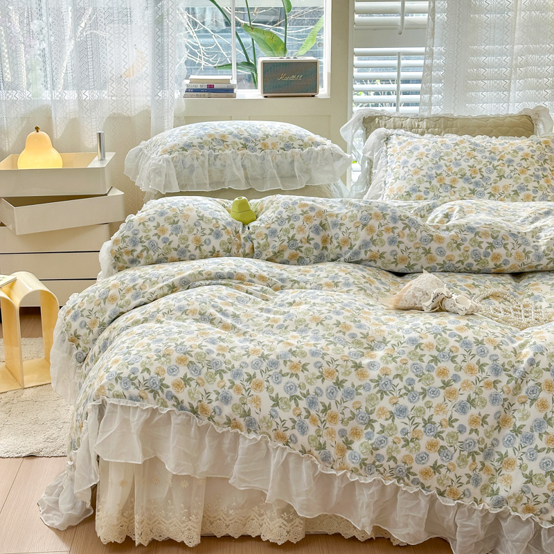 当前位置: 91家纺网 > 商品网购 > 床品套件 > 四件套 > 双层纱四件套 > 淑女公社 2024春夏新款竹棉双层纱床裙款四件套-玫瑰庄园 玫瑰庄园 绿