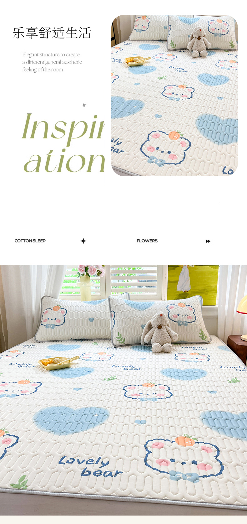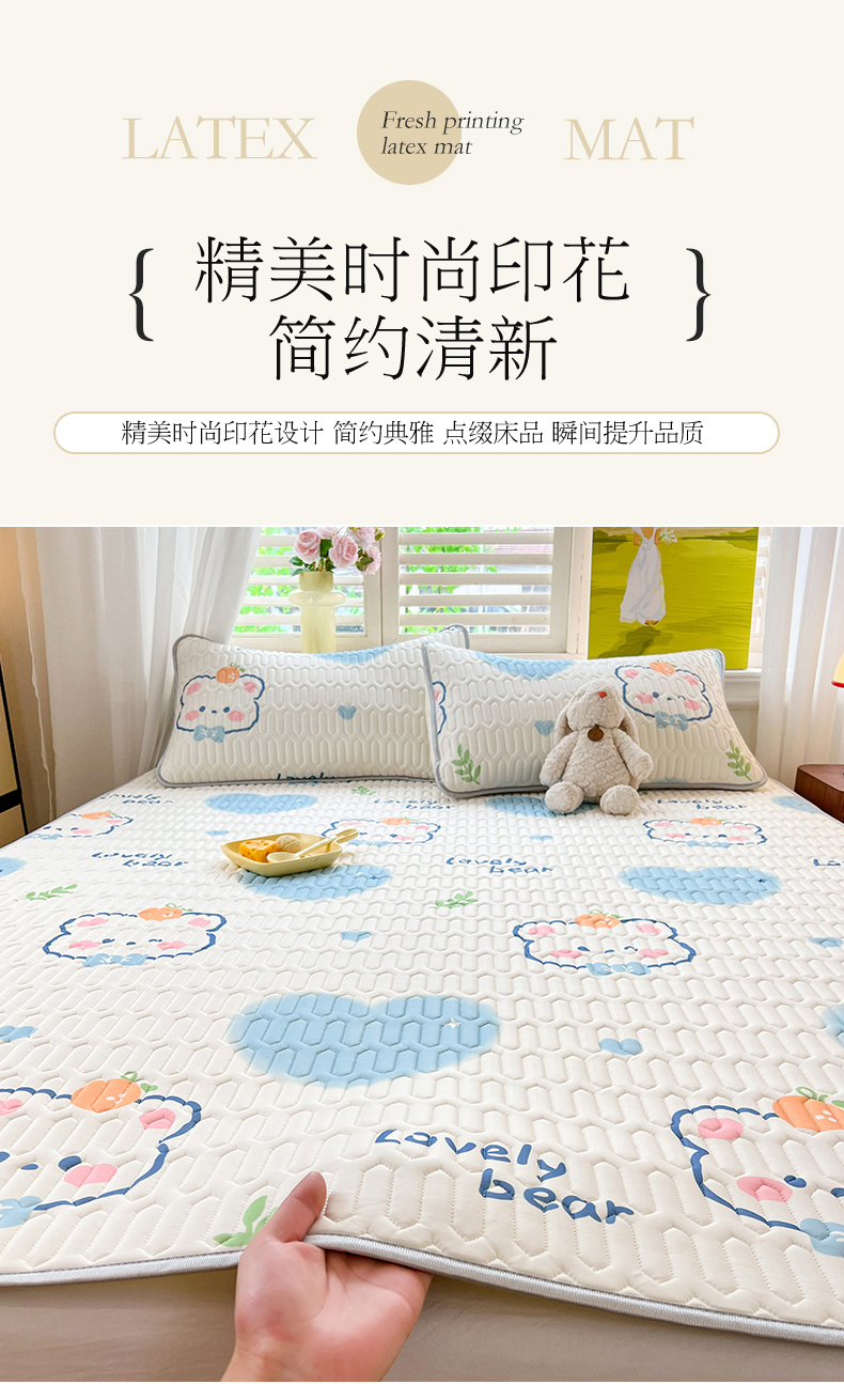 慕澄家纺 2024新款小版印花0.5乳胶凉席夏被四件套 爱心小熊