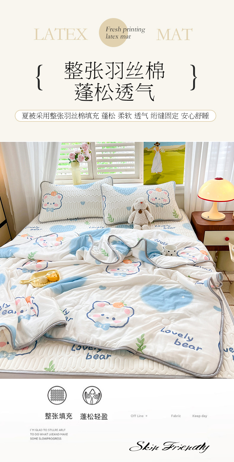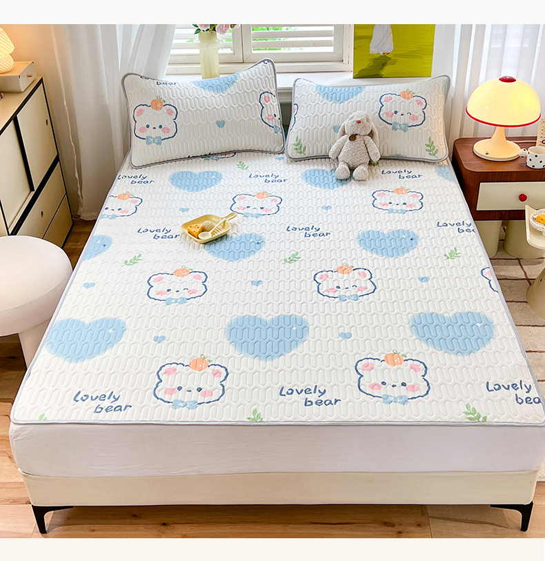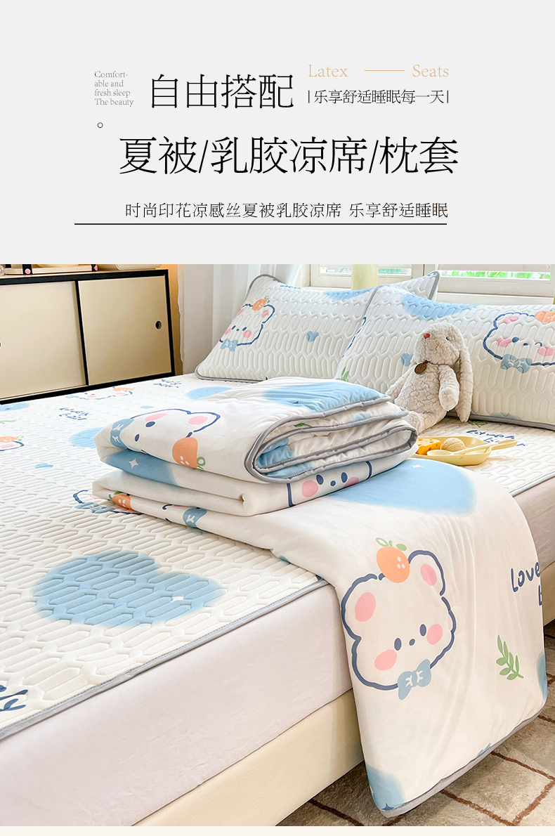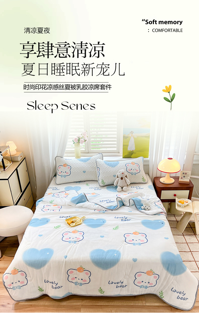 商品名称:慕澄家纺 2024新款小版印花0.5乳胶凉席夏被四件套 爱心小熊
