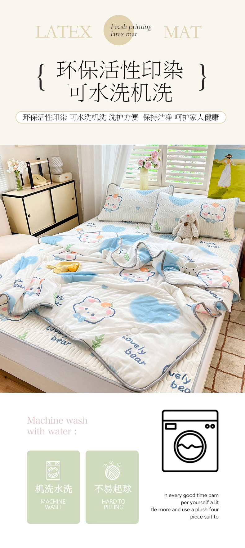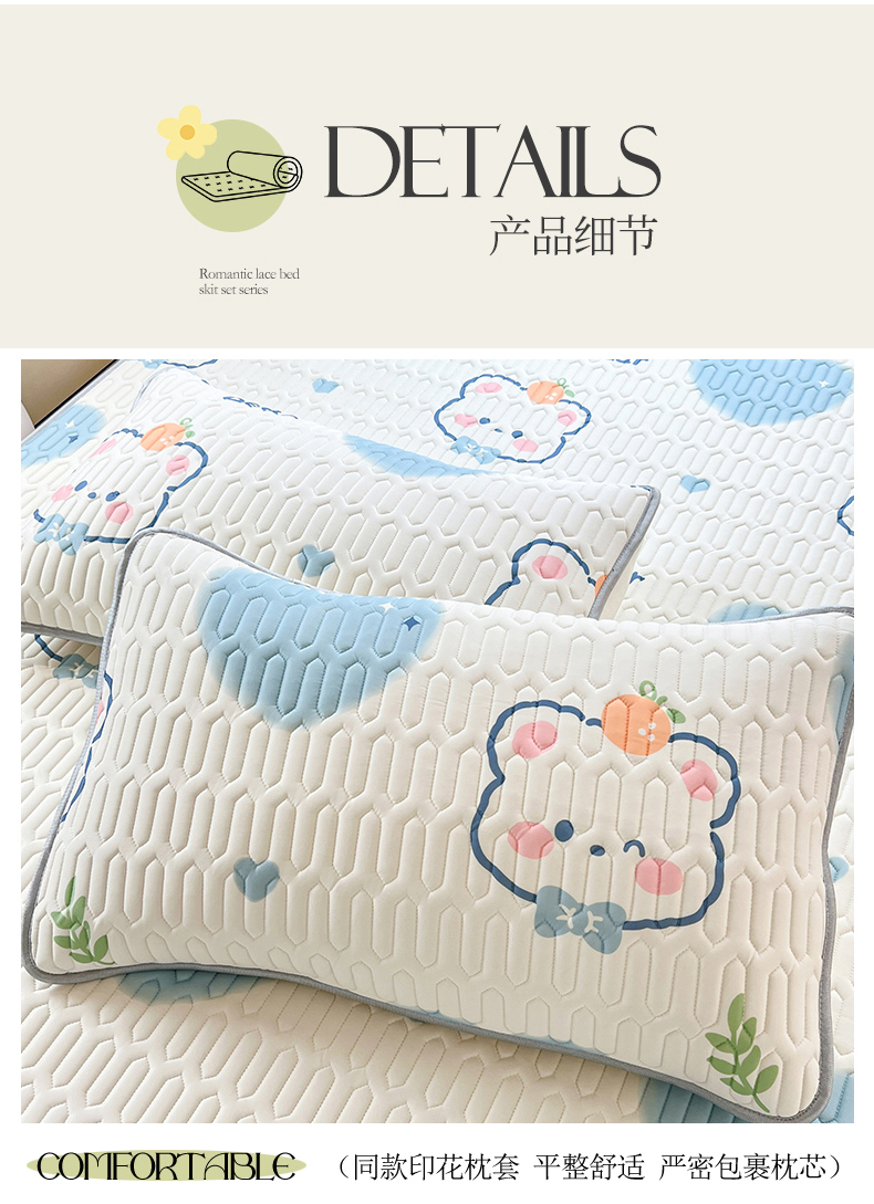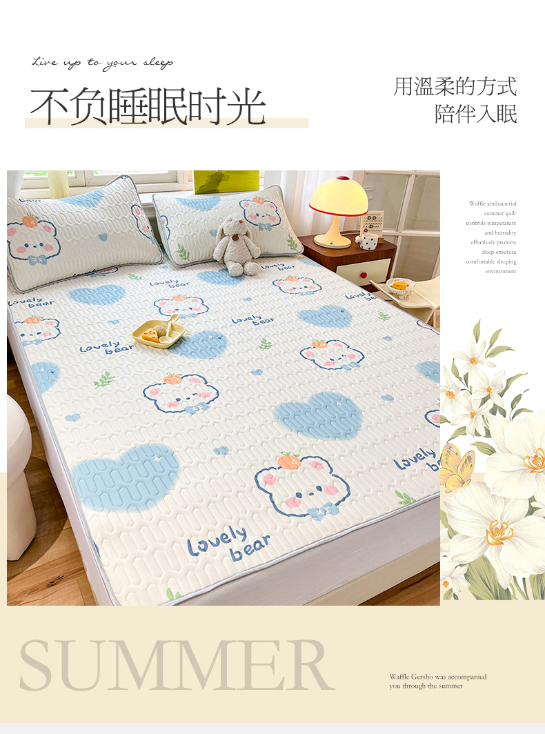 商品名称:慕澄家纺 2024新款小版印花0.5乳胶凉席夏被四件套 爱心小熊