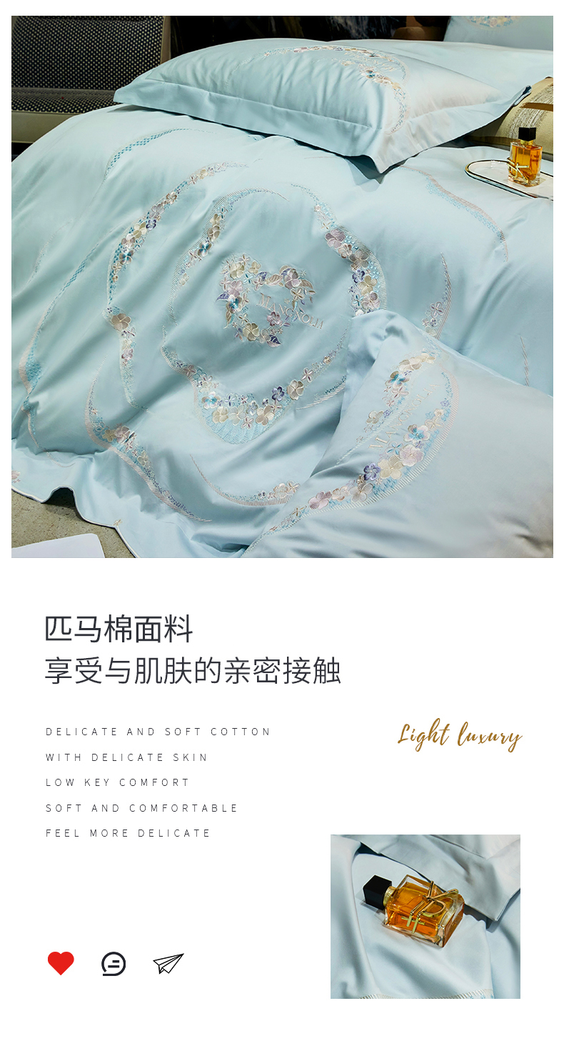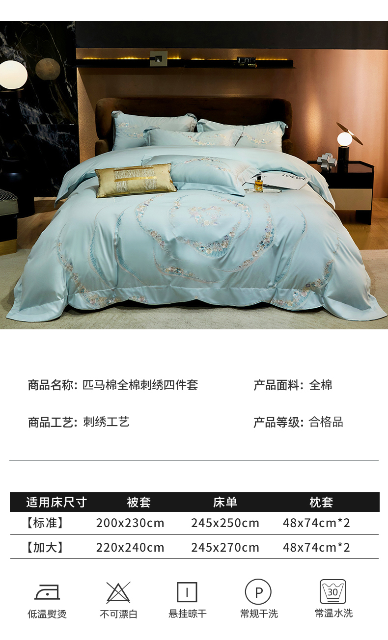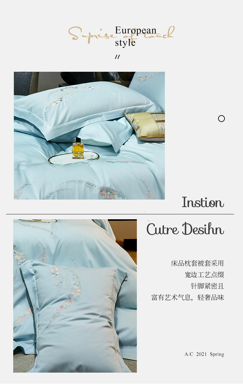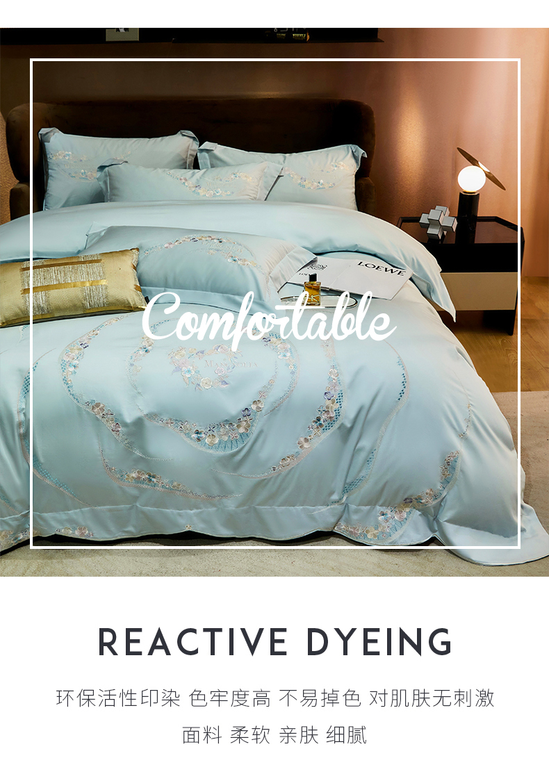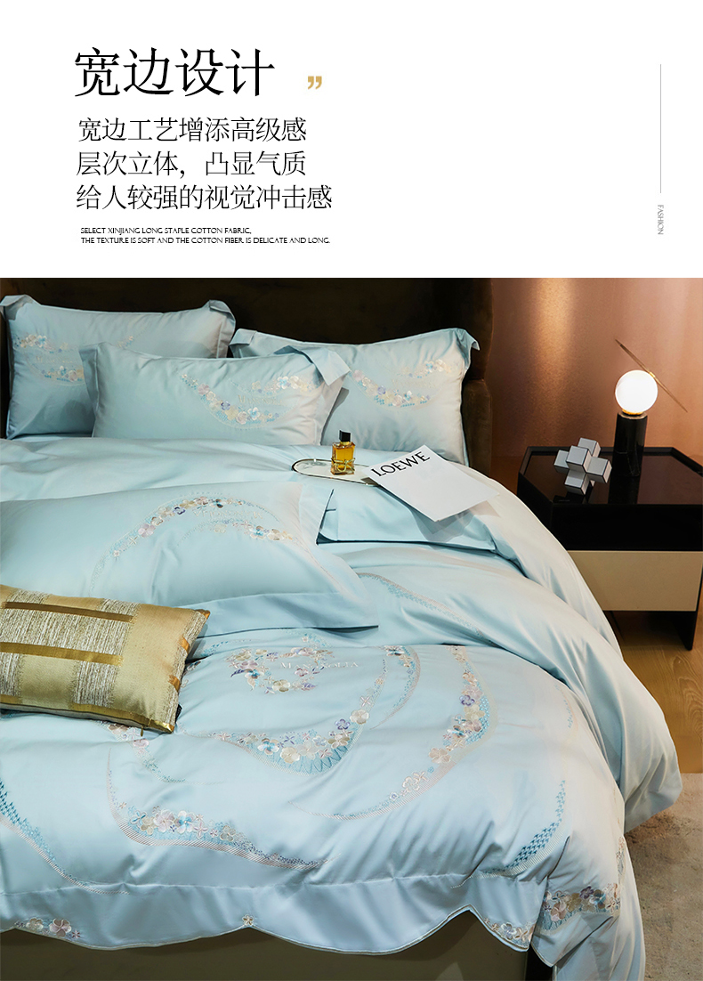 商品名称:红番天家居馆 2025新款全棉长绒棉绣花工艺四件套-怡悦系列 怡悦 西子蓝