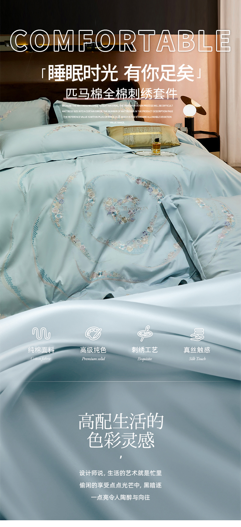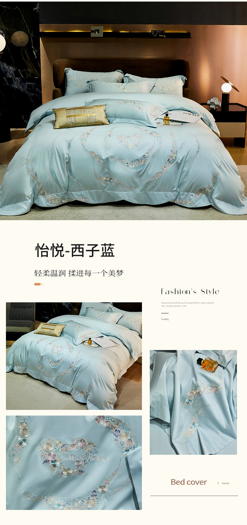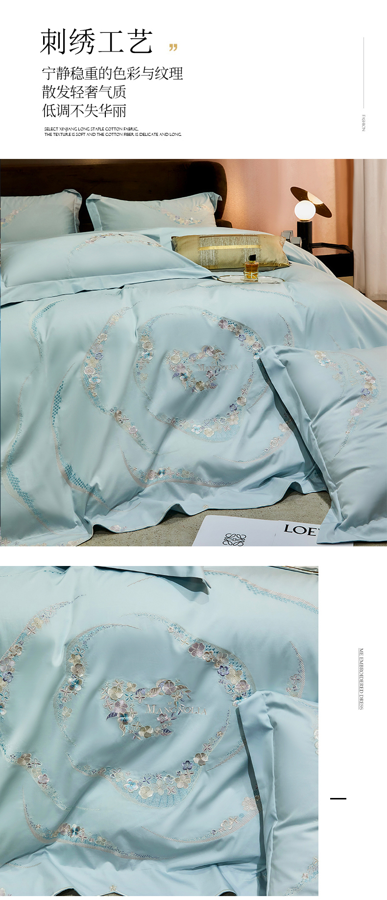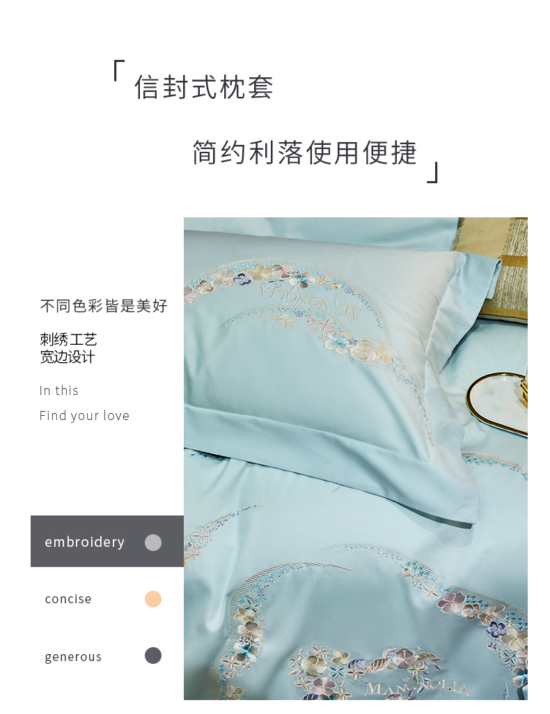商品名称:红番天家居馆 2025新款全棉长绒棉绣花工艺四件套-怡悦系列 怡悦 西子蓝