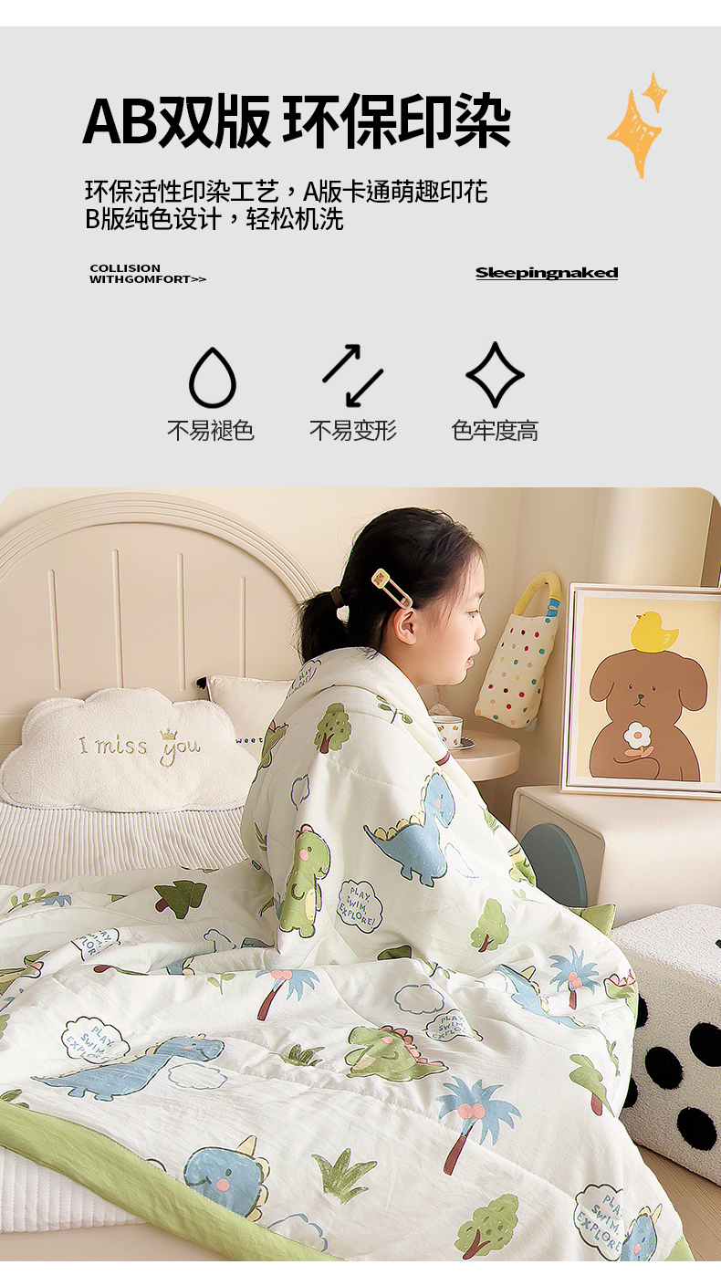 吉咪兔家纺 2024年新款水洗棉儿童夏凉被婴儿空调被宝宝幼儿园专用大豆芯夏季薄款小被子 恐龙世界