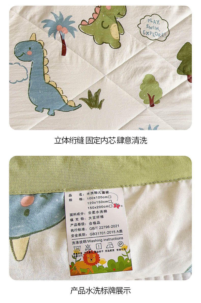 商品名称:吉咪兔家纺 2024年新款水洗棉儿童夏凉被婴儿空调被宝宝幼儿园专用大豆芯夏季薄款小被子 恐龙世界