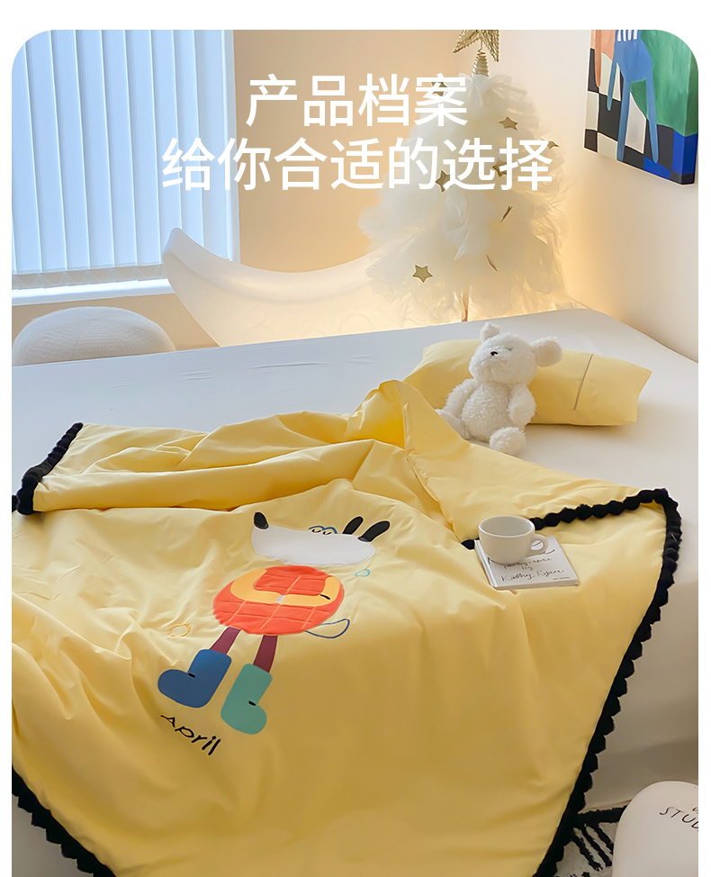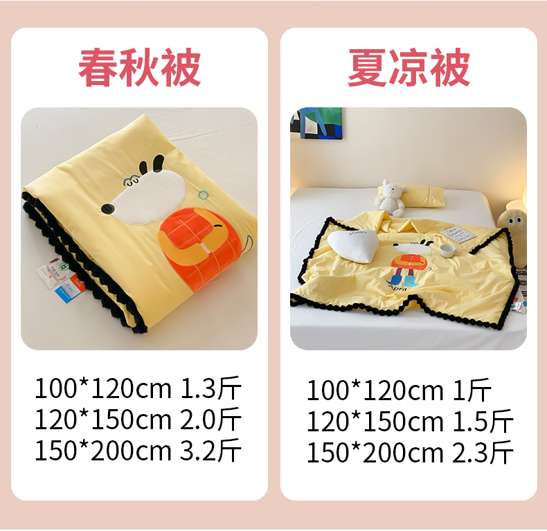 (总)喜多兔儿童家纺 2025新款小惊喜儿童蚕丝蛋白天丝抗菌夏凉被,粉色礼貌小鸭,粉色围裙小兔宝,黄色多彩小狗,黄色画画小猫,灰蓝色活动熊猫,灰蓝色运动小狮子,卡其色勤劳小马,卡其色围兜小熊,绿色萌萌恐龙,绿色微笑小猴