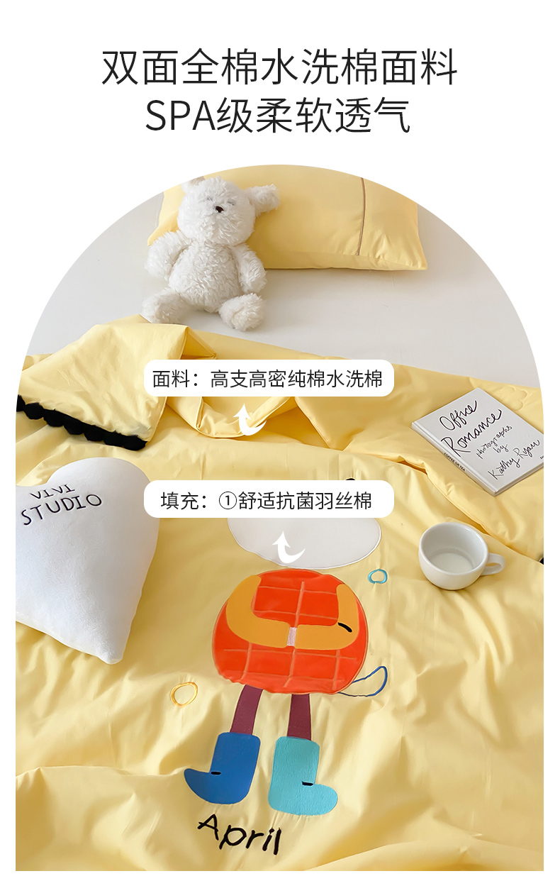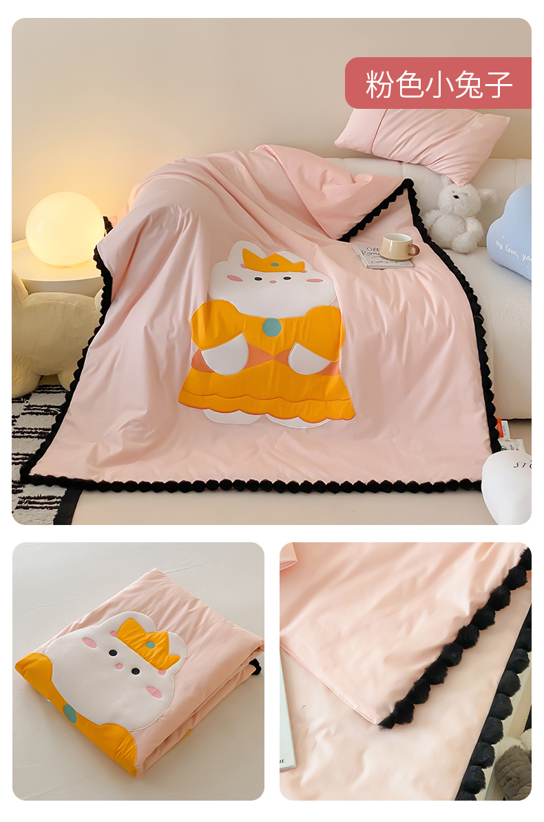 (总)喜多兔2025新款高精密人字棉贴布绣奶里奶气夏被夏凉被,粉色奶气小兔,黄色奶气小狗,咖色奶气小熊,蓝色奶气小象,绿色奶气小猫