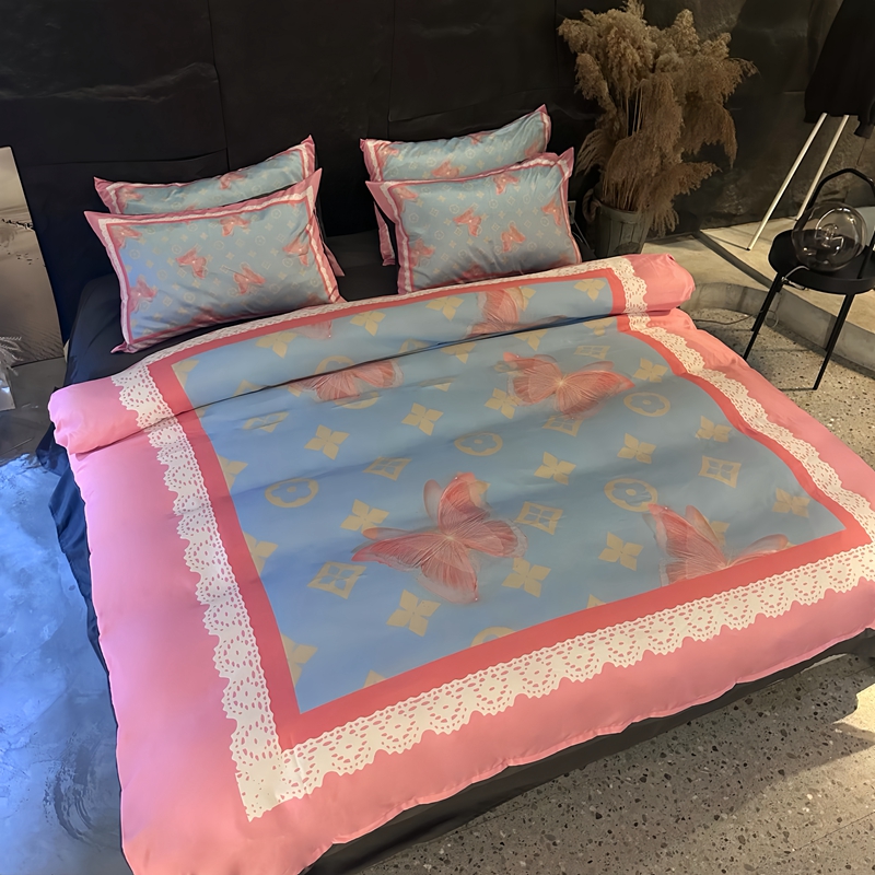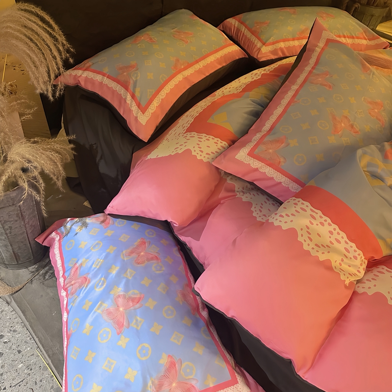 丽斐纺织 2024新款双面进口冰丝数码印花四件套水洗真丝四件套 冰丝彩蝶