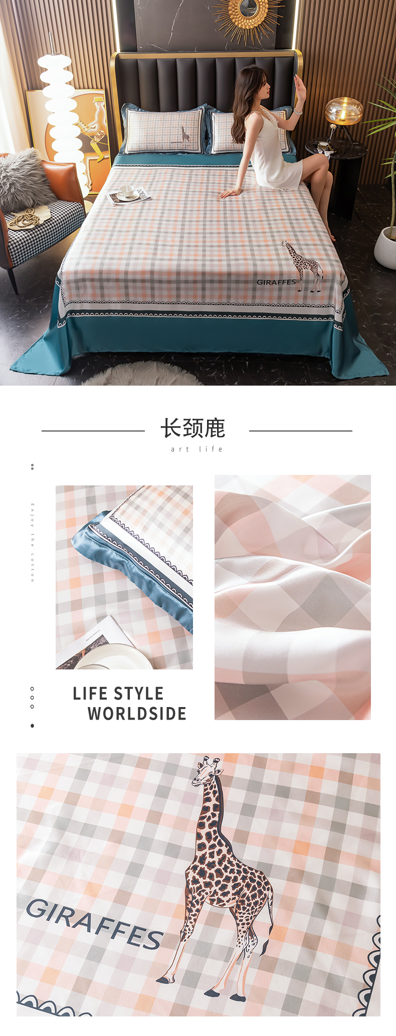 商品名称:梦舒羽 2025新款大版可水洗冰丝床单宿舍床垫保护罩三件套 长颈鹿