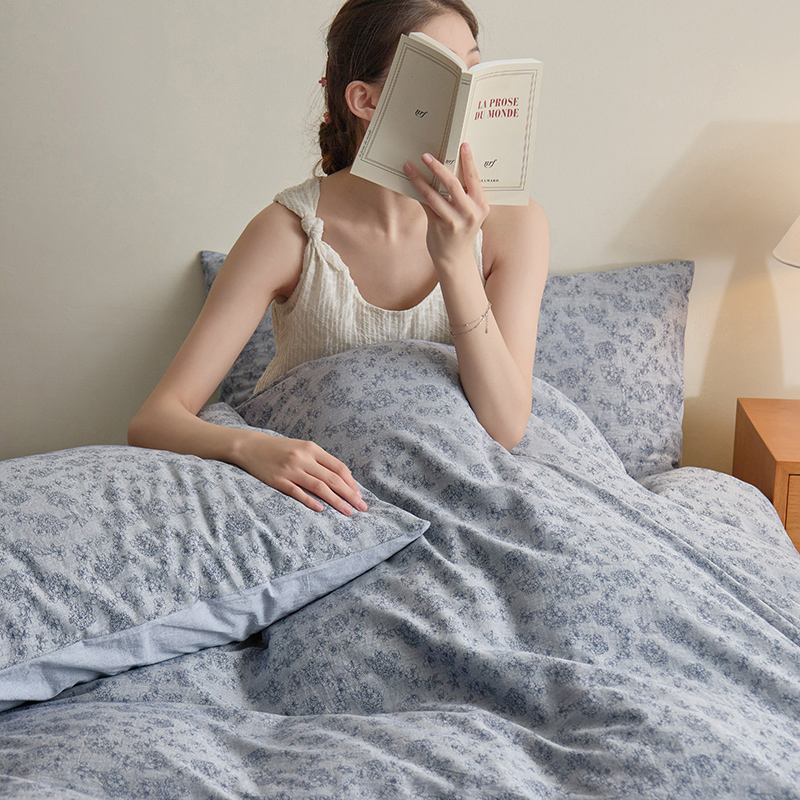 当前位置: 91家纺网 > 商品网购 > 床品套件 > 四件套 > 提花四件套 > 原研家居 2024新款水洗棉提花系列四件套 繁花-蓝