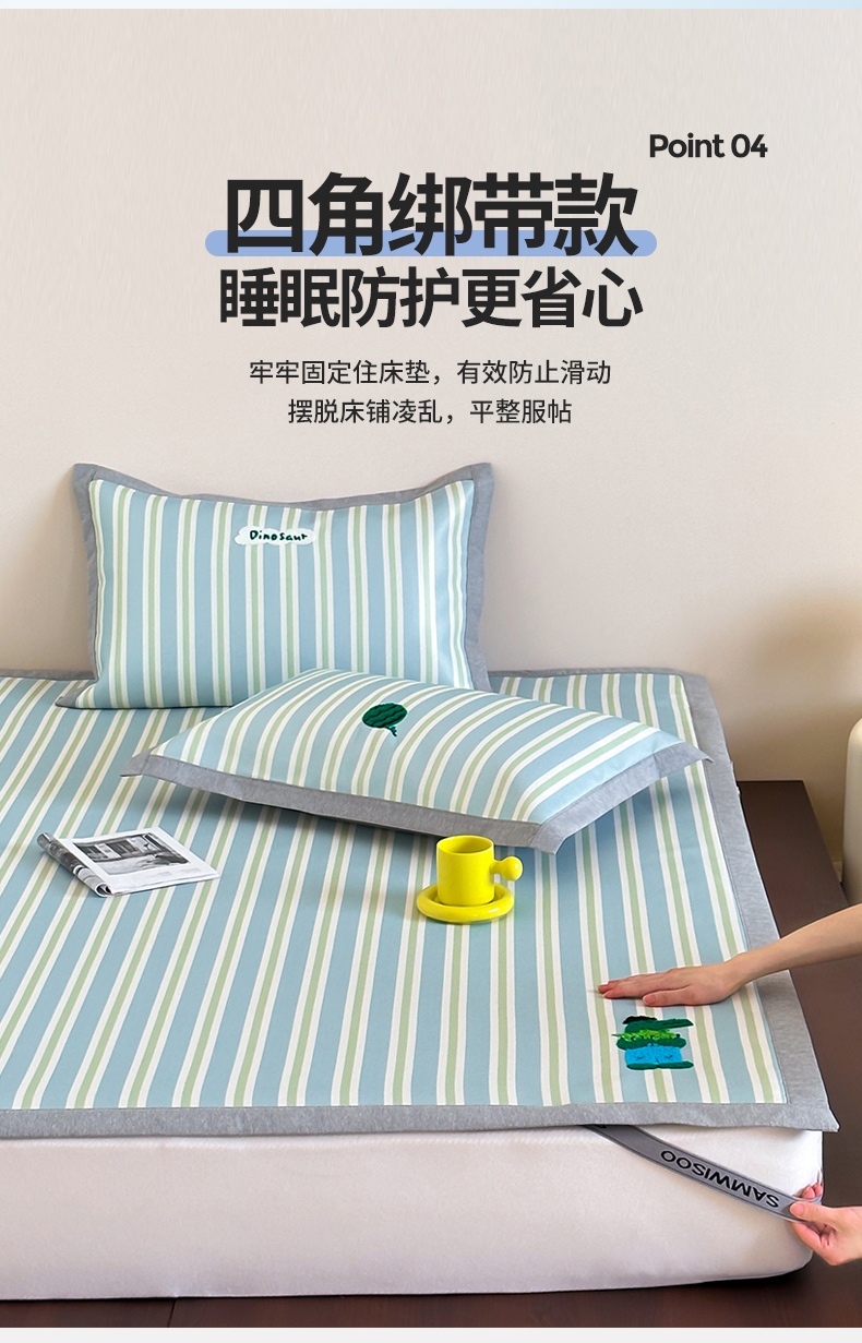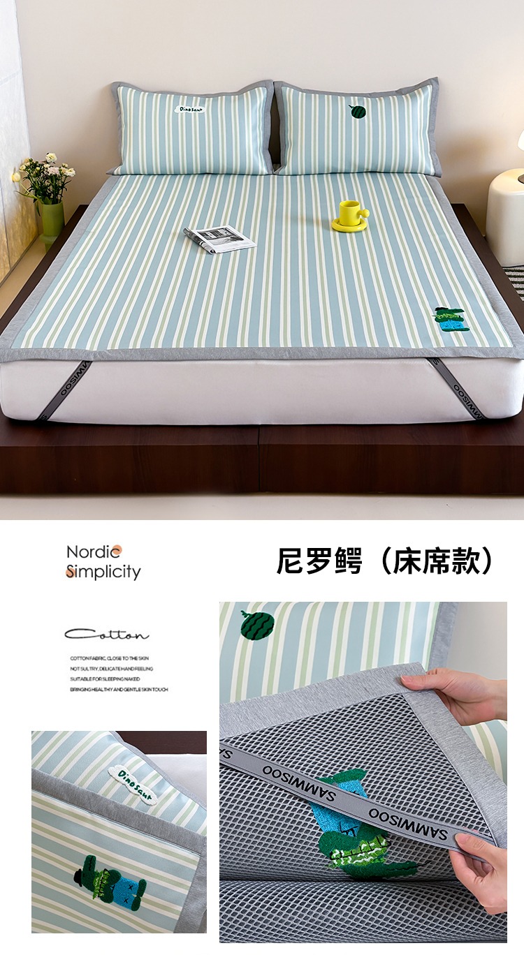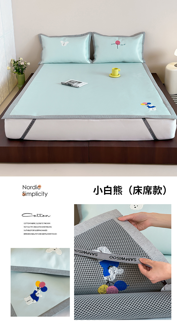 商品名称:(总)三味舒屋2025新款凉感抗菌防螨毛巾绣印花冰丝养生席(新升级7A抗菌)床席款