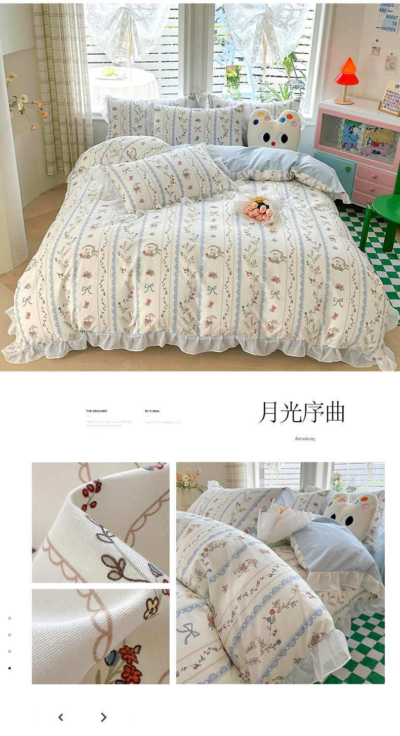 富瑞阁 2024年新款13372全棉雪纺花边花边款四件套 三件套 月光序曲