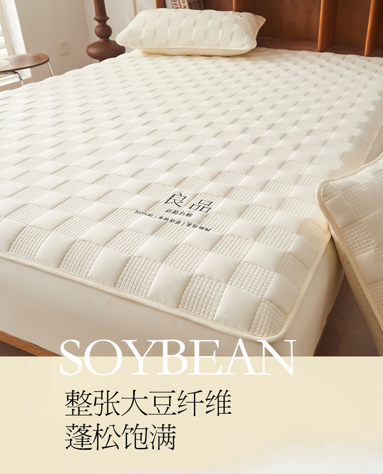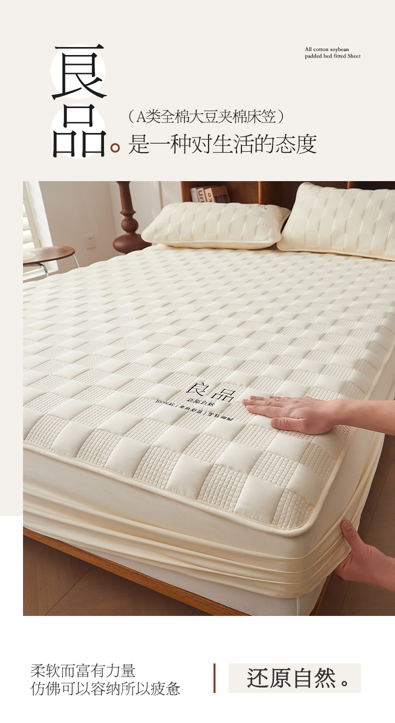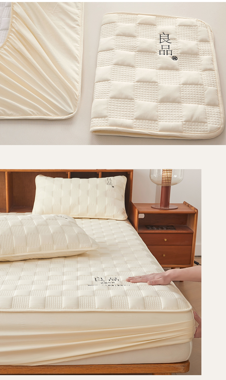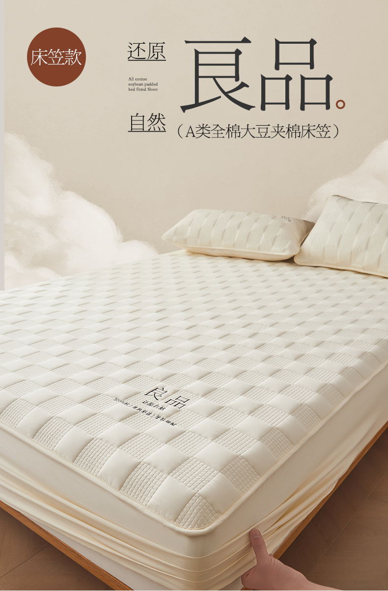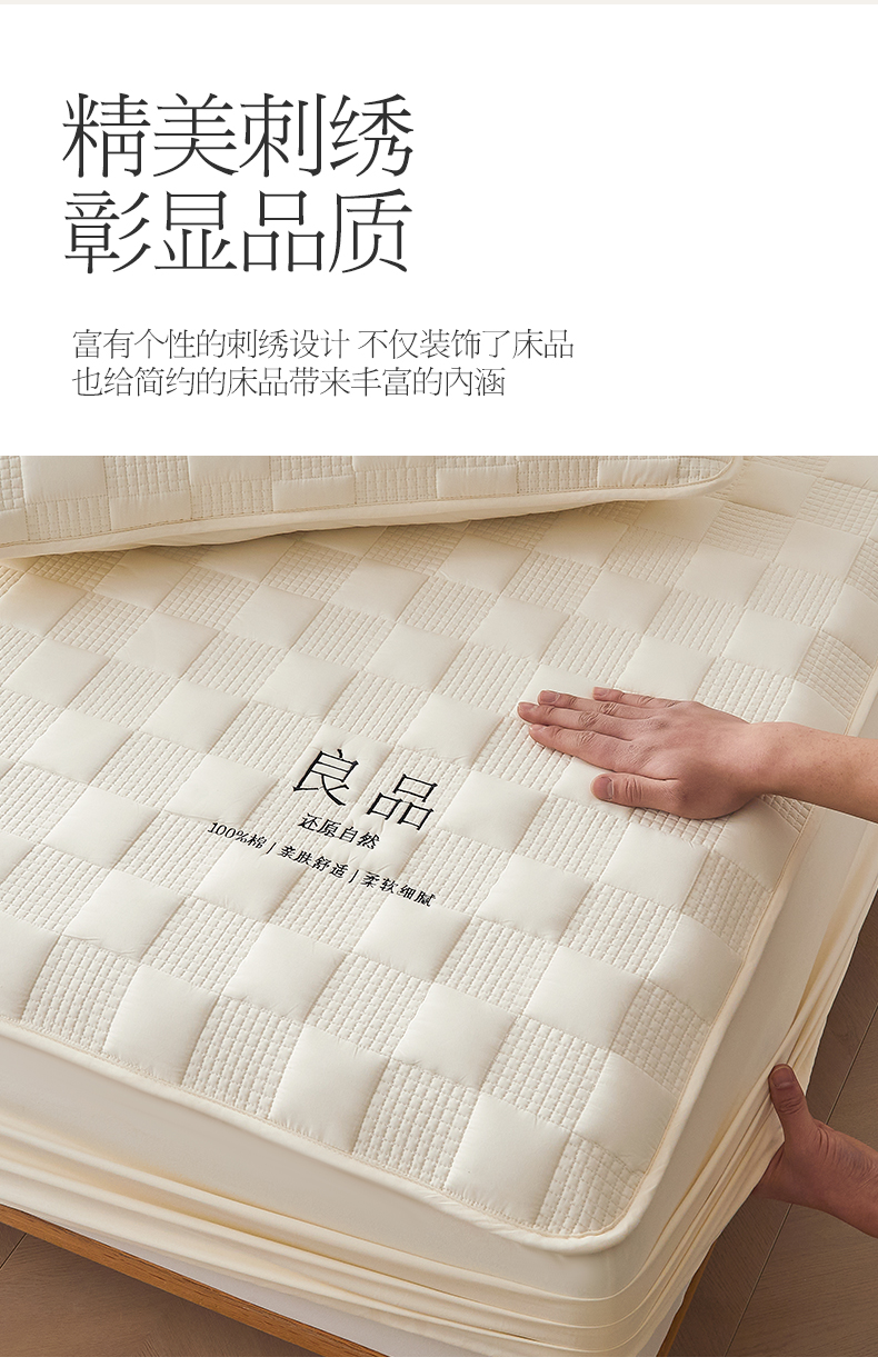 • 91家纺网 家纺一手货源 找家纺 居眠 2024新款A类大豆夹棉刺绣良品床笠 良品白