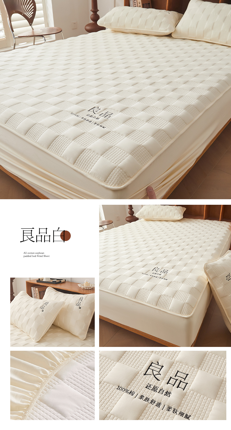 居眠 2024新款A类大豆夹棉刺绣良品床笠 良品白