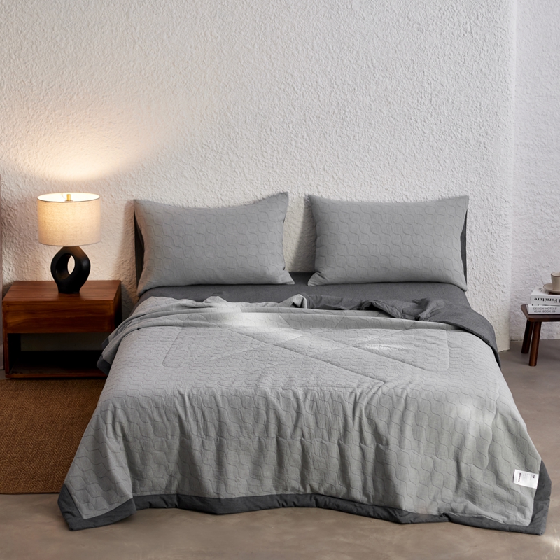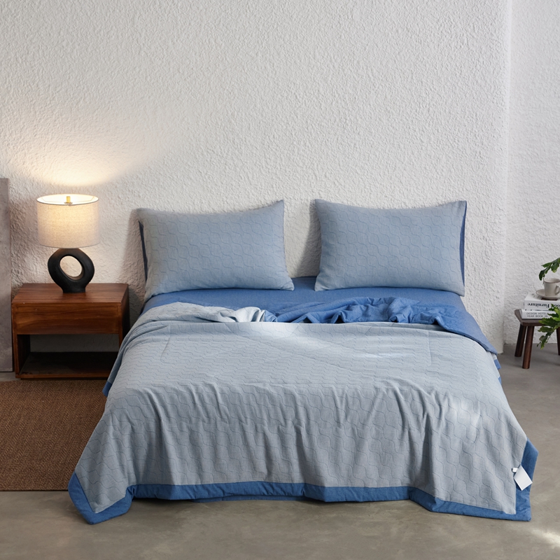 (总)安莱生活 2024色织双层纱提花波浪三系列夏被及夏被四件套--斜纹波兰