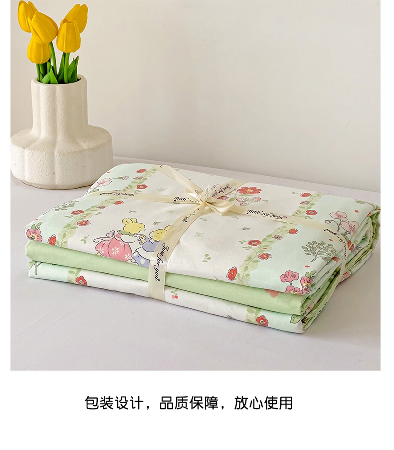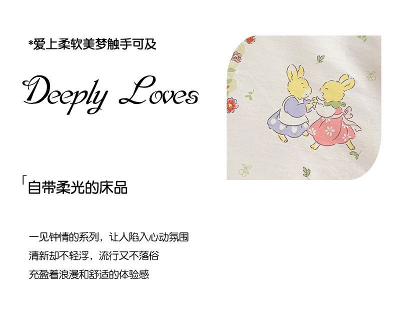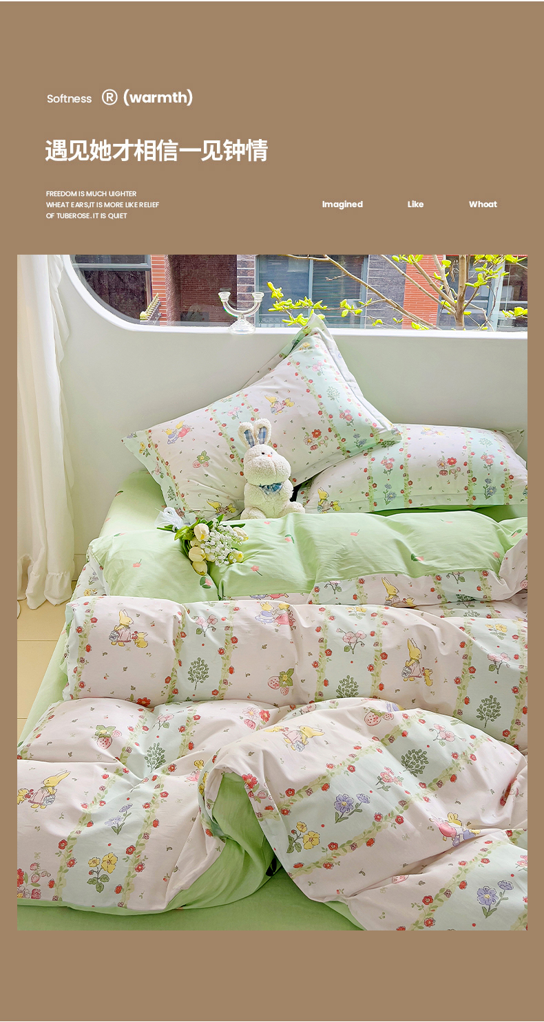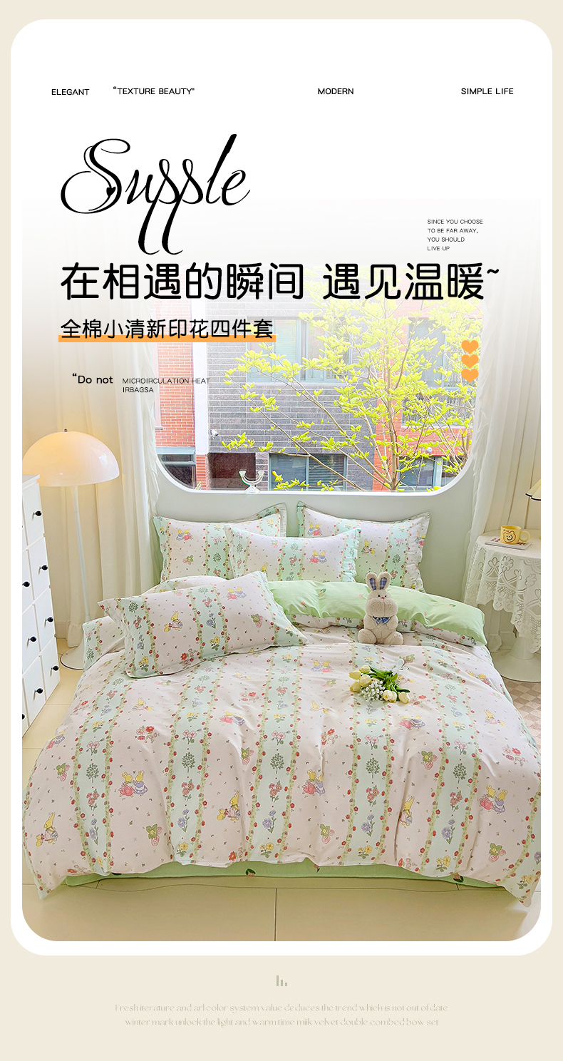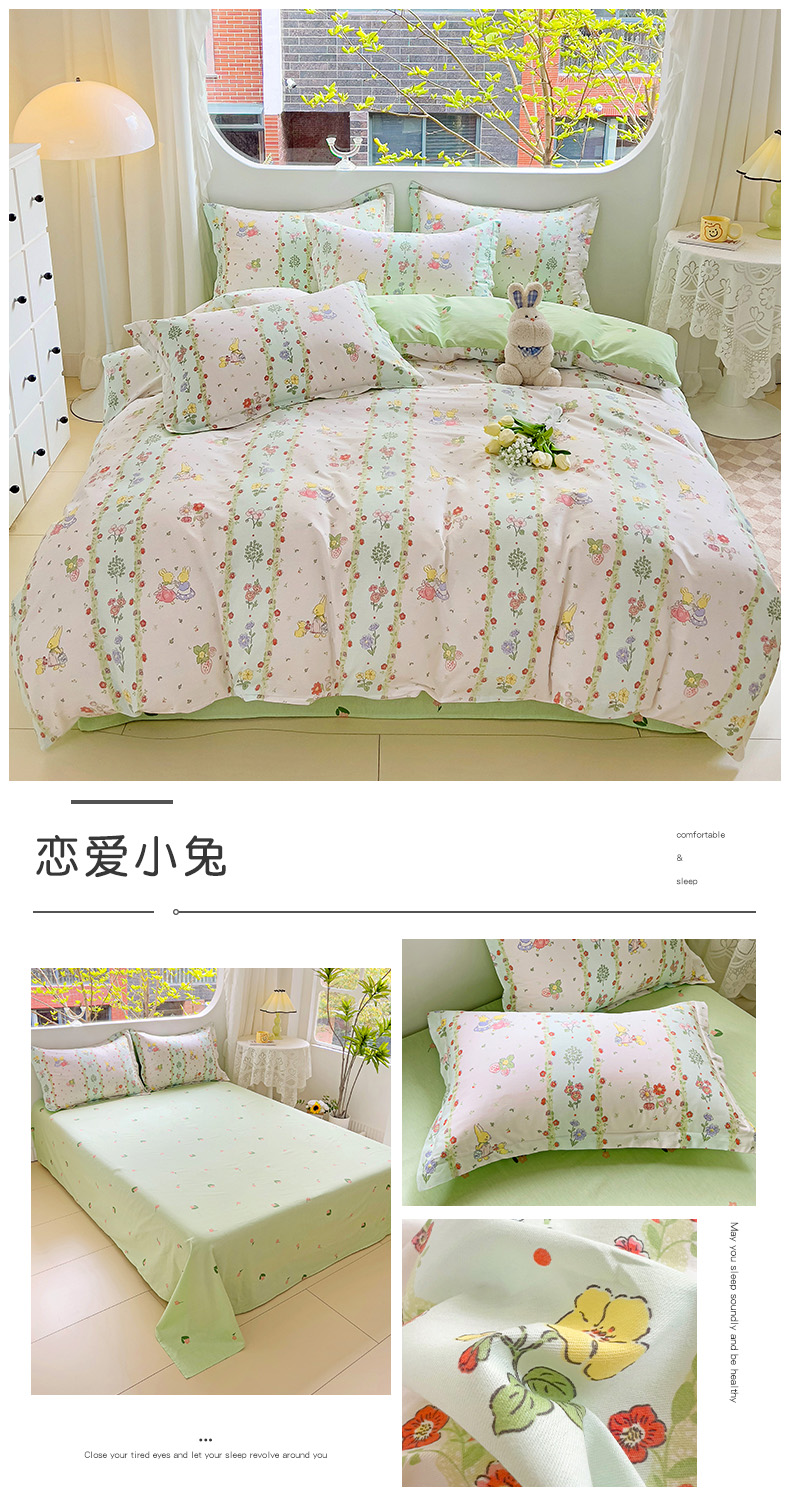 暖芯优选 204新款直播爆款全棉-ins印花系列四件套纯棉三件套床单床笠 恋爱小兔