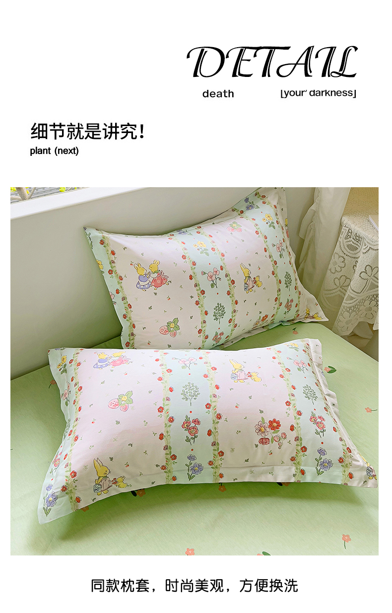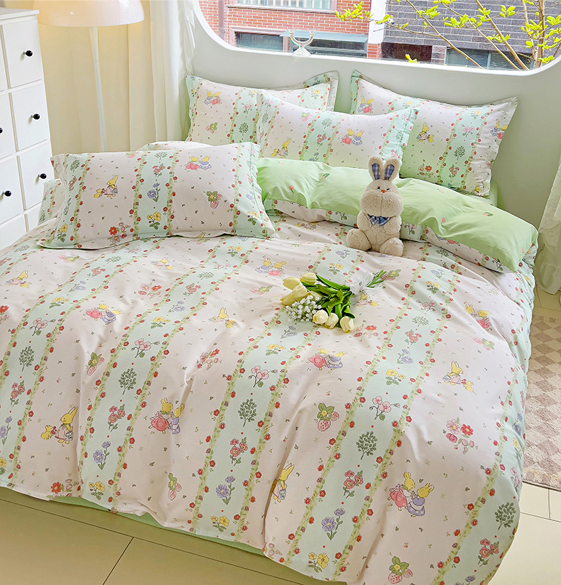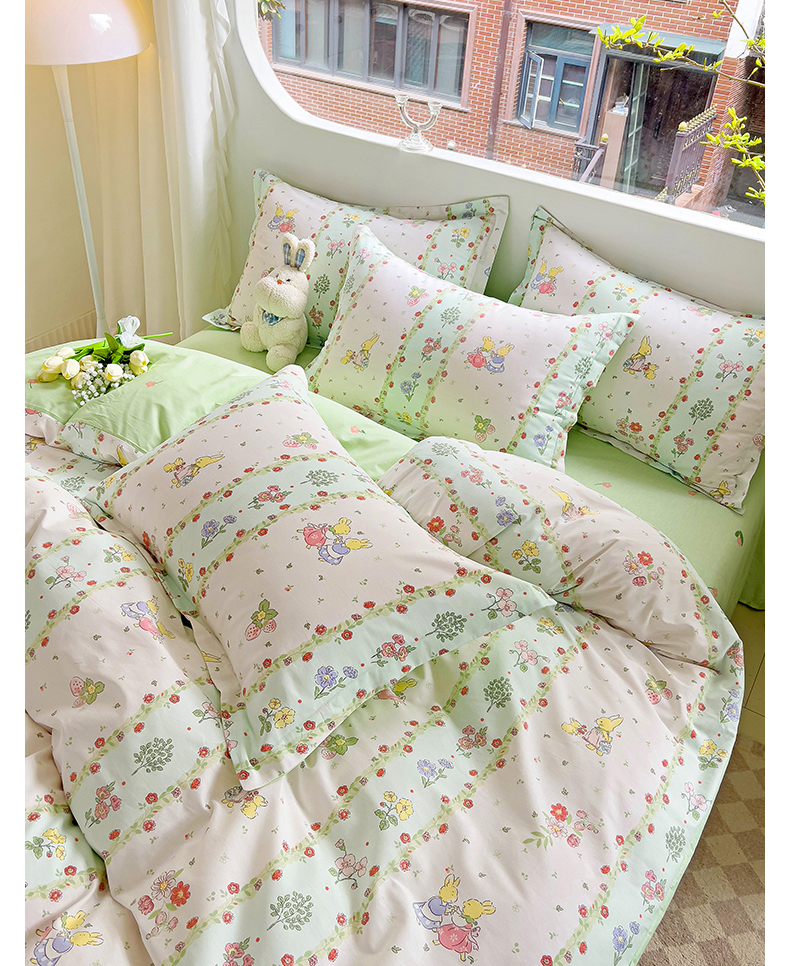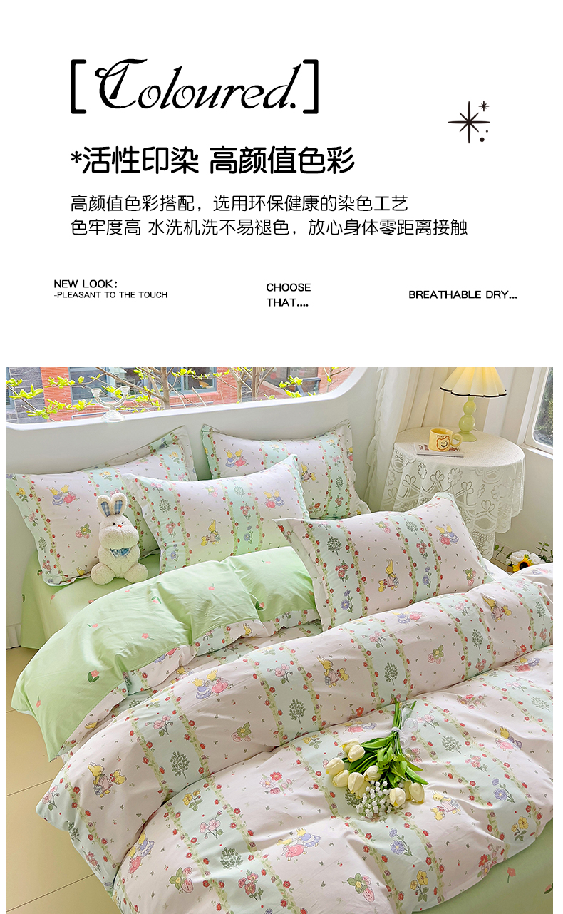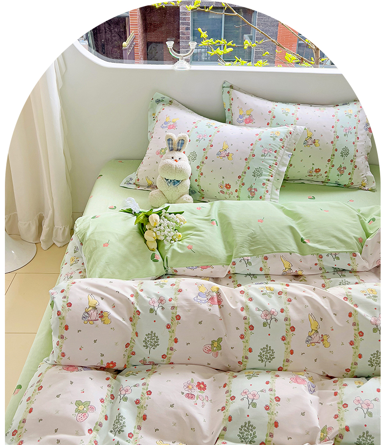 暖芯优选 204新款直播爆款全棉-ins印花系列四件套纯棉三件套床单床笠 恋爱小兔