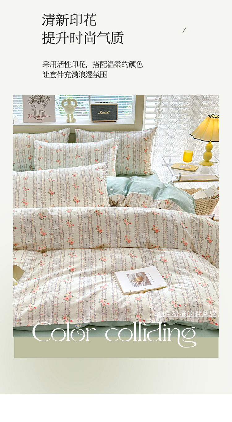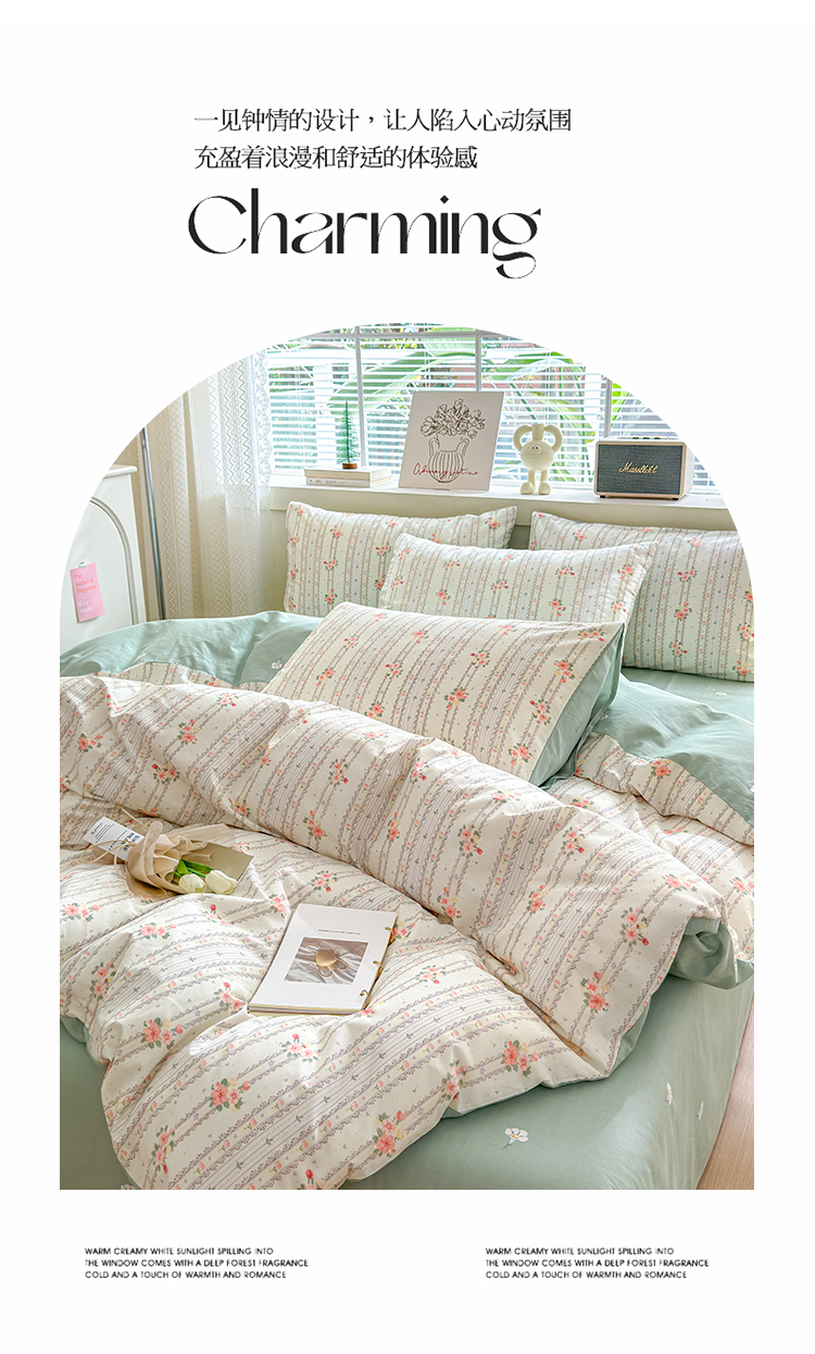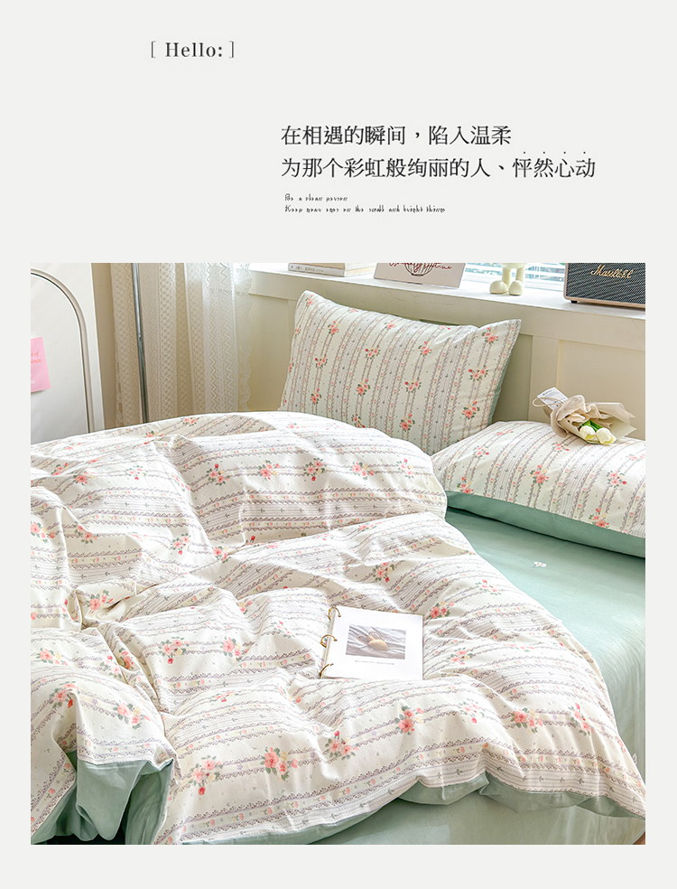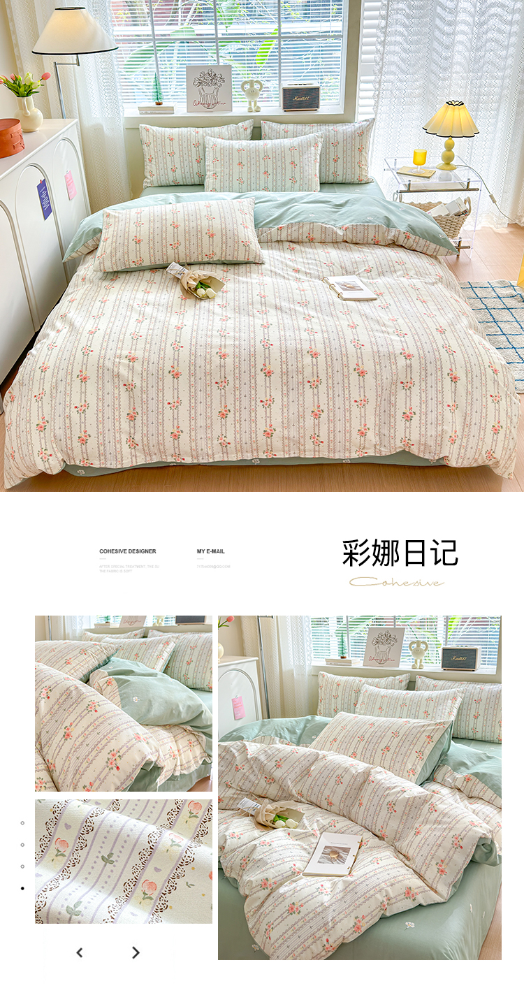 当前位置: 91家纺网 > 商品网购 > 床品套件 > 四件套 > 全棉普通四件套 > 清雅福 2024新款全棉13372小清新四件套和单品系列第四季 彩娜日记