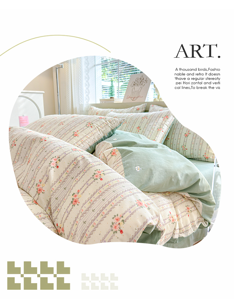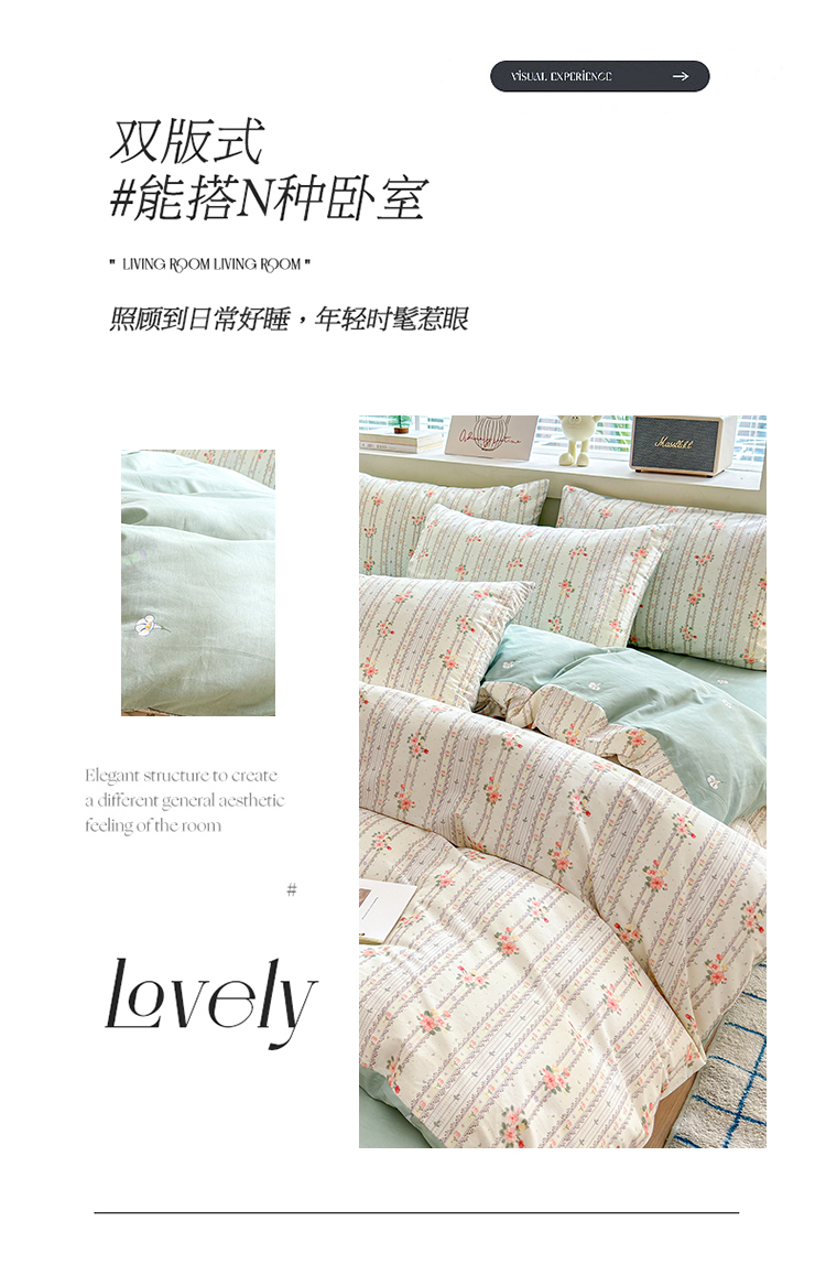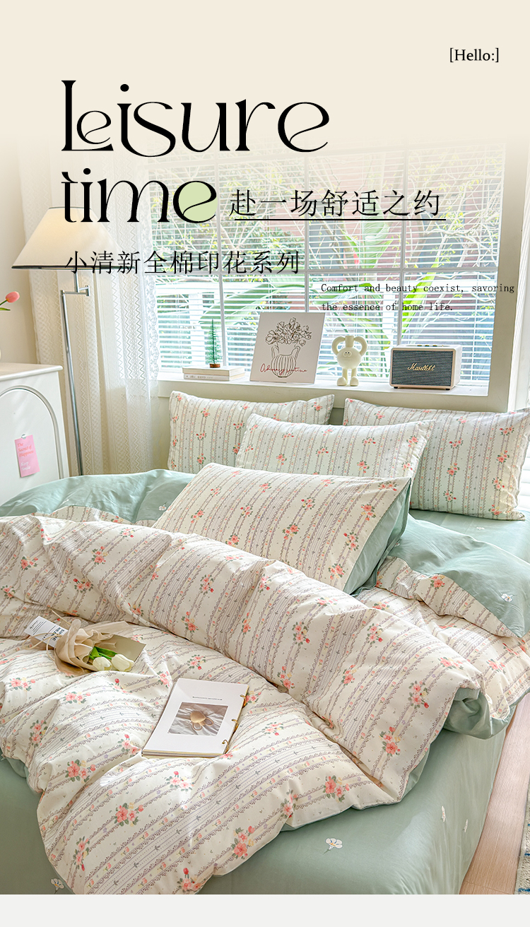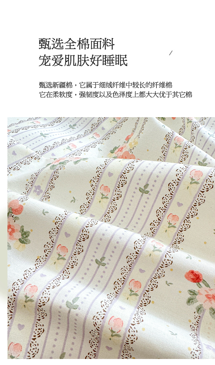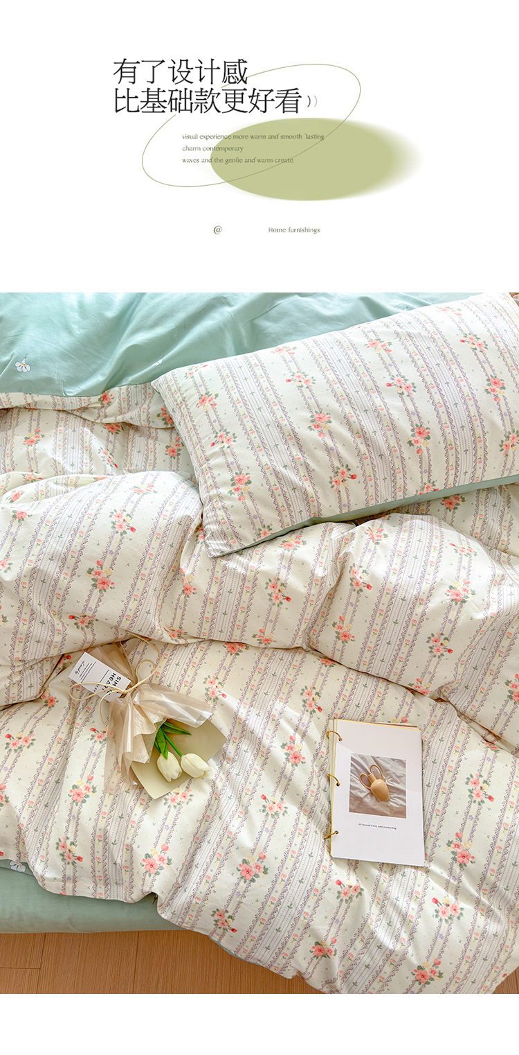 当前位置: 91家纺网 > 商品网购 > 床品套件 > 四件套 > 全棉普通四件套 > 清雅福 2024新款全棉13372小清新四件套和单品系列第四季 彩娜日记