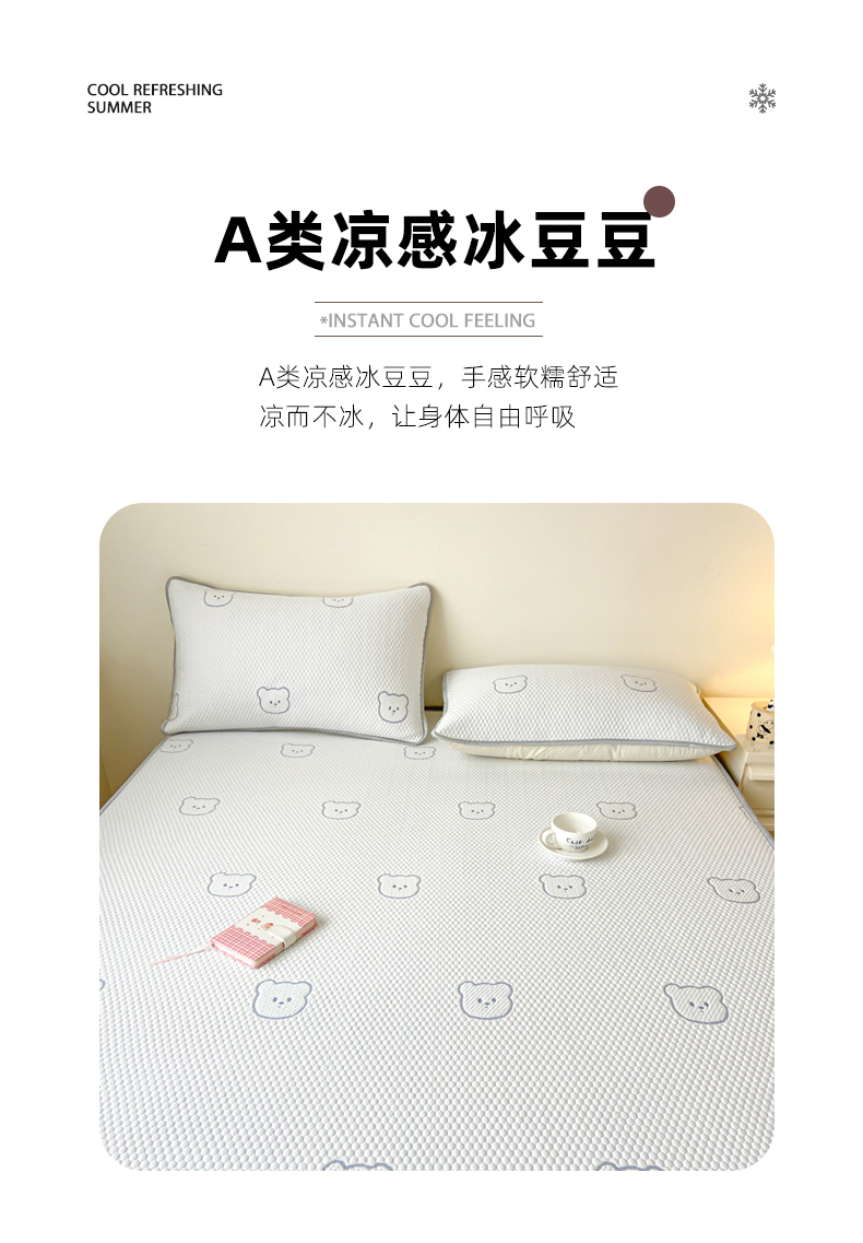 (总)吉象家纺 2024新款凉豆豆凉感软席凉席,小熊粉,小熊蓝,小熊象牙白,灰色蝴蝶结,白底小灰熊,白底小蓝熊,竹叶白,竹叶绿,粉色蝴蝶结
