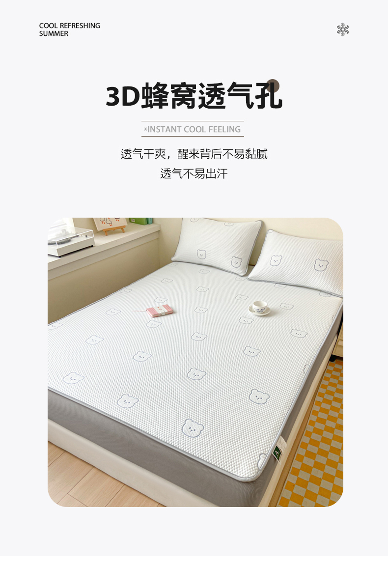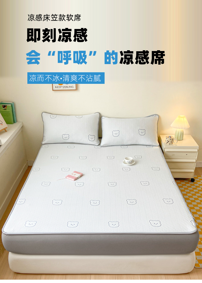 吉象家纺 2024新款凉豆豆凉感软席凉席 白底小蓝熊