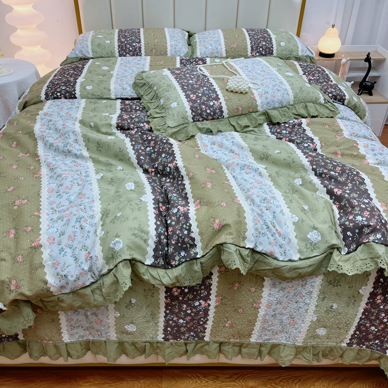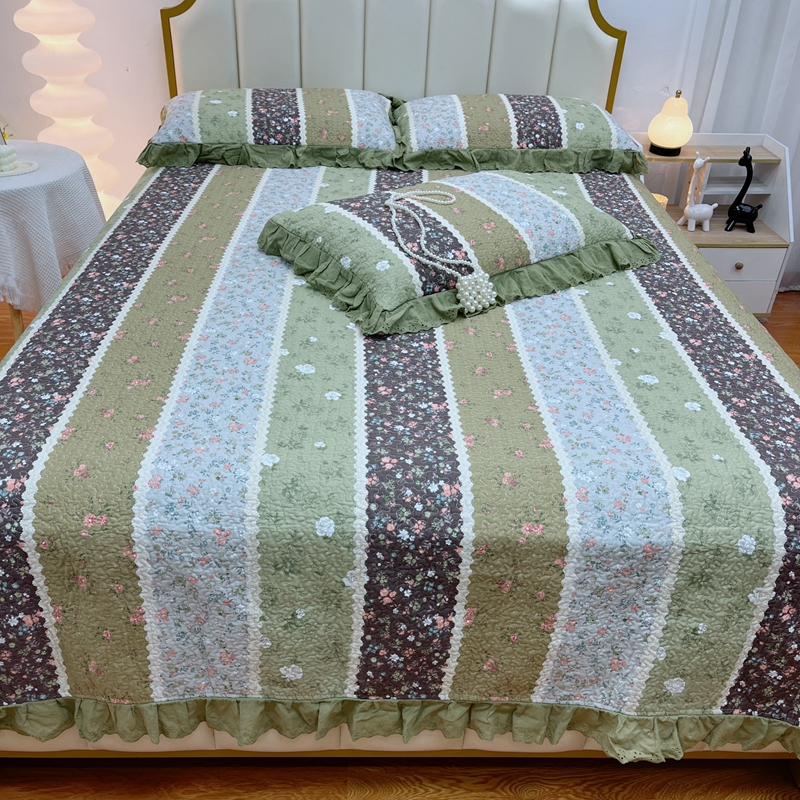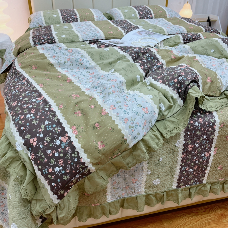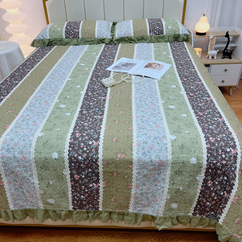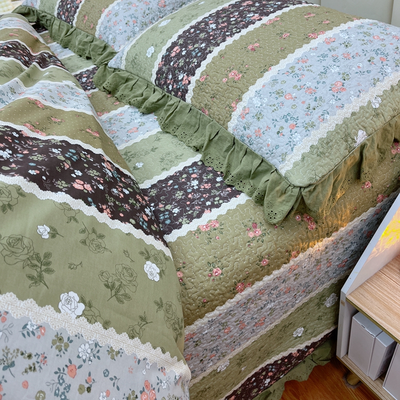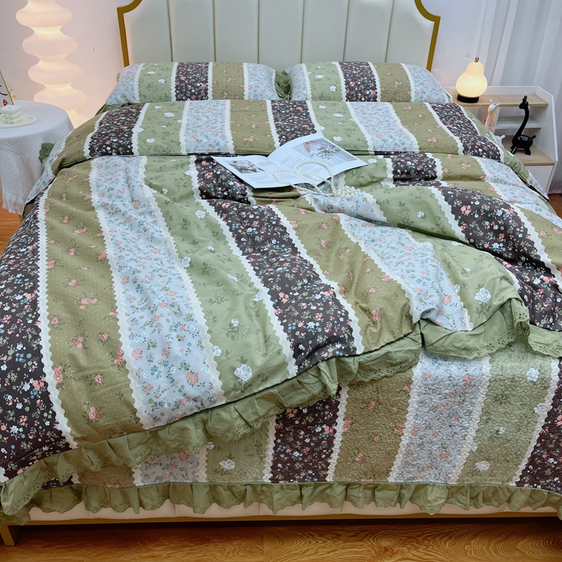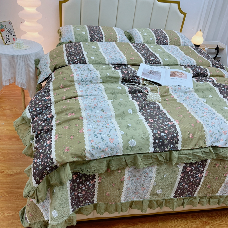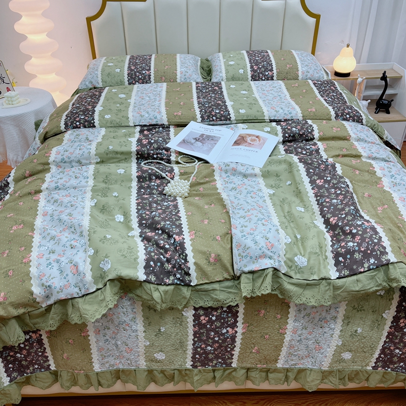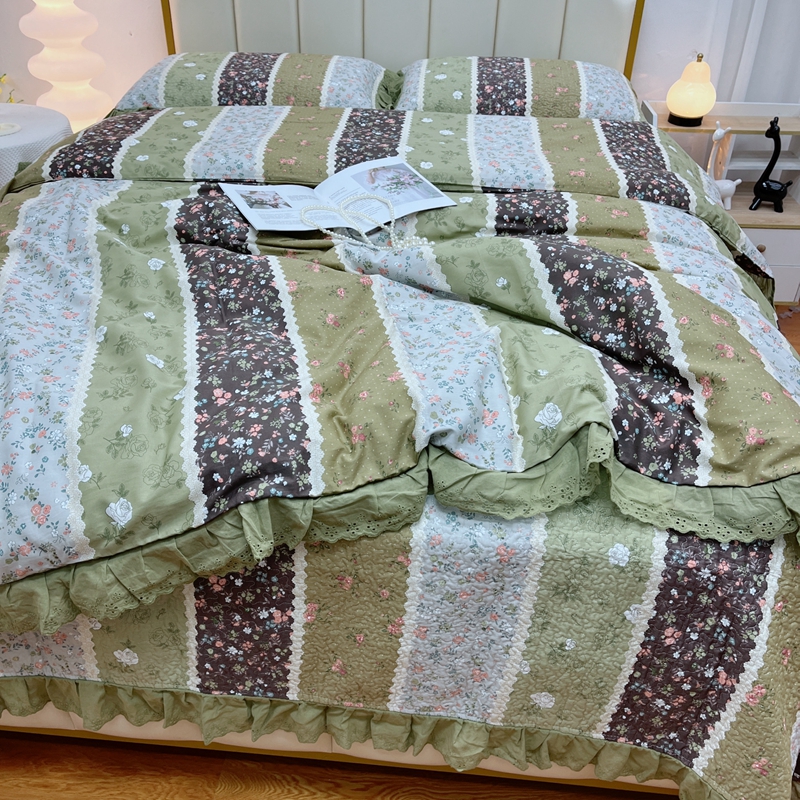 暖居 2024新款砂洗棉花被套全棉床盖四件套绗缝夹棉纯棉床盖三件套 荷塘月色