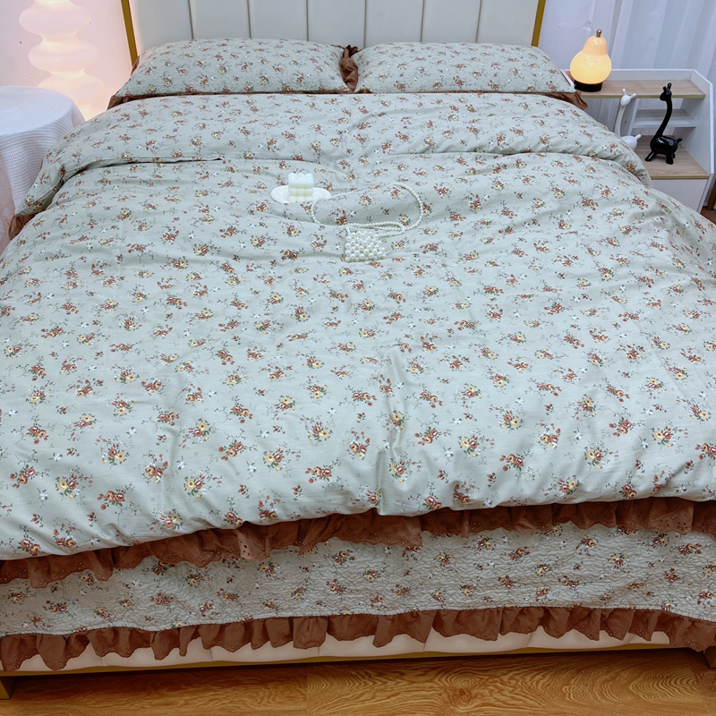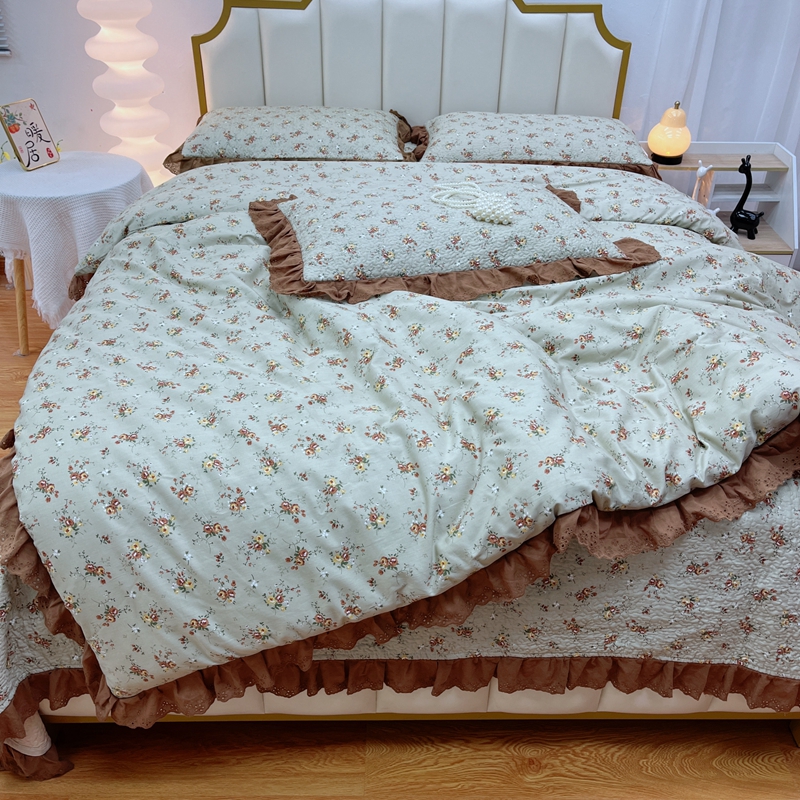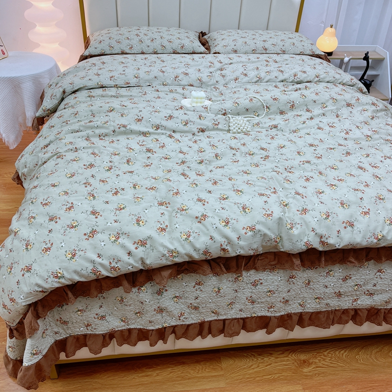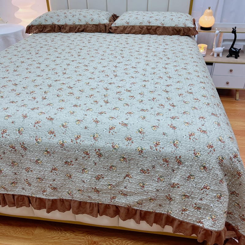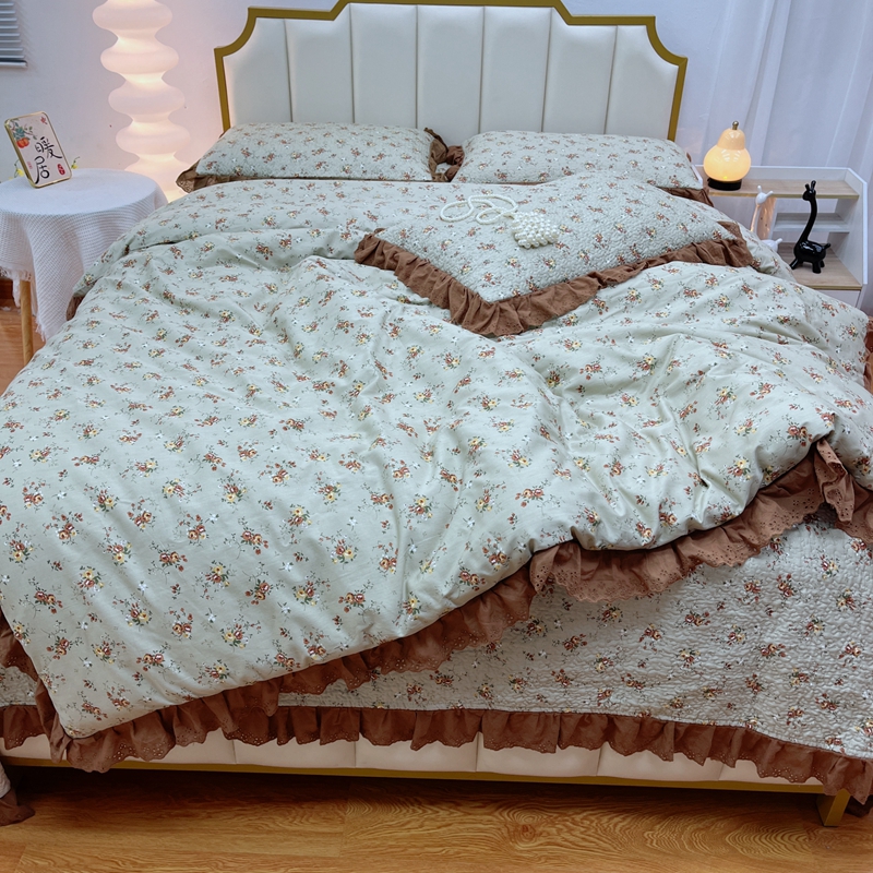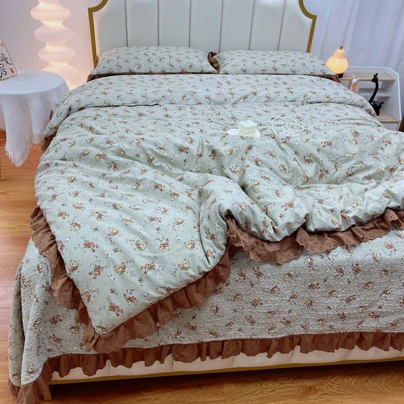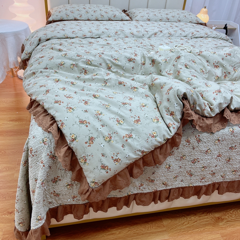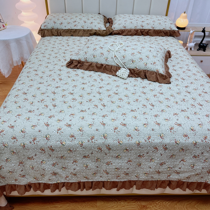 商品名称:暖居 2024新款砂洗棉花被套全棉床盖四件套绗缝夹棉纯棉床盖三件套 浅咖