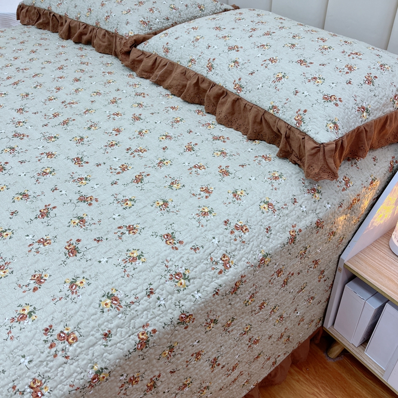 暖居 2024新款砂洗棉花被套全棉床盖四件套绗缝夹棉纯棉床盖三件套 浅咖
