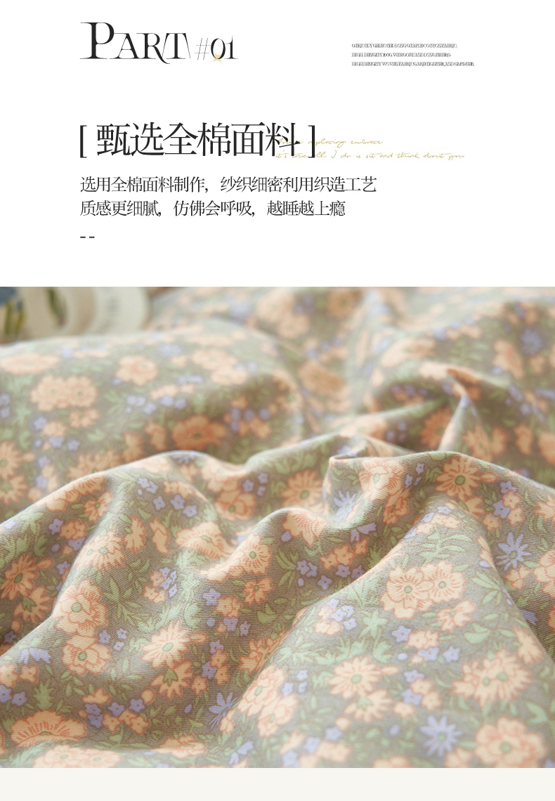 商品名称:恒爱家纺 2024新款全棉甜美少女四件套 繁花似锦