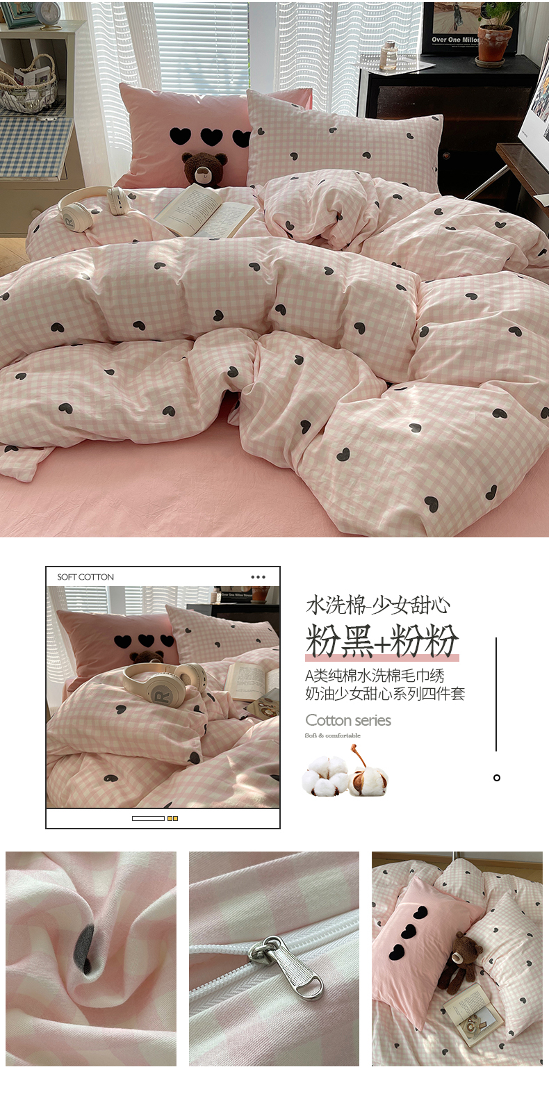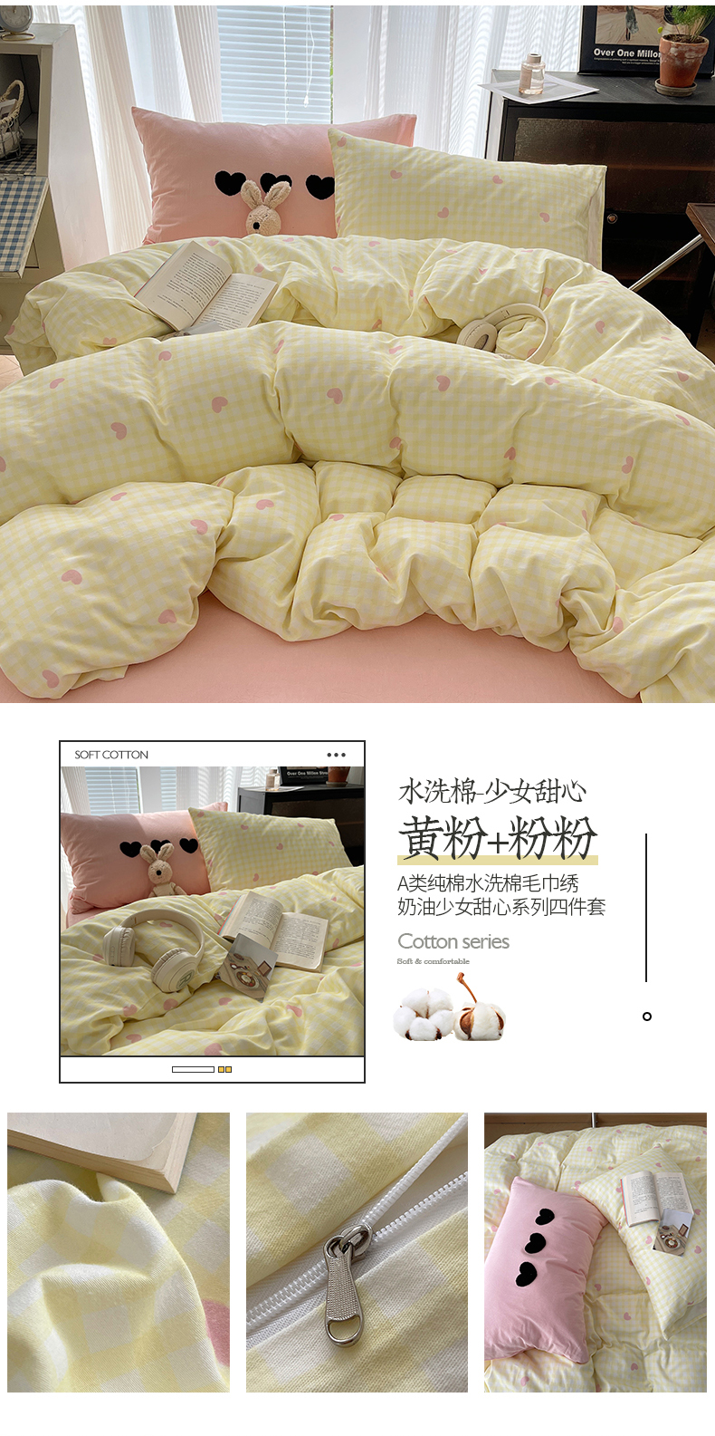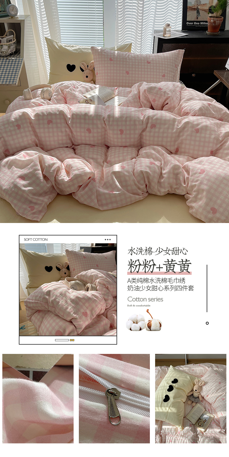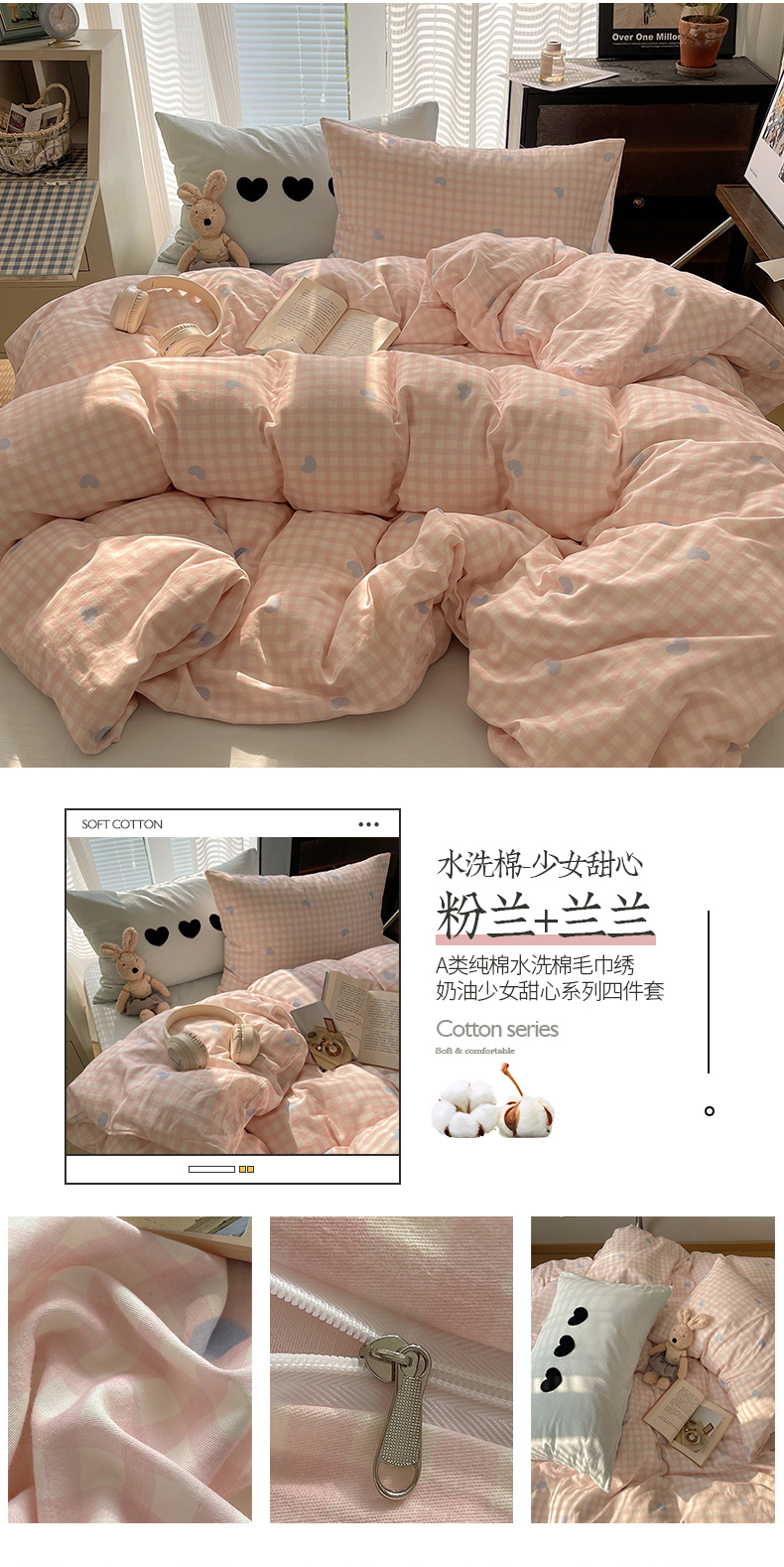 商品名称:(总)桃子家居 2024新款A类纯棉水洗棉毛巾绣奶油少女甜心系列学生四件套