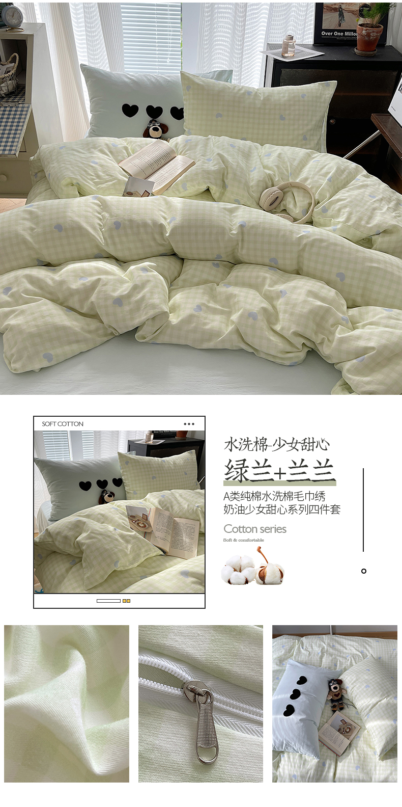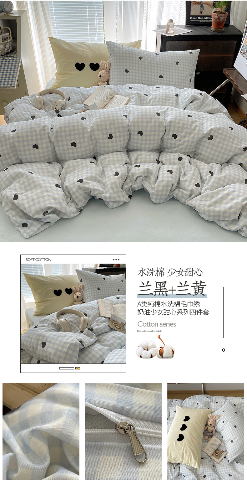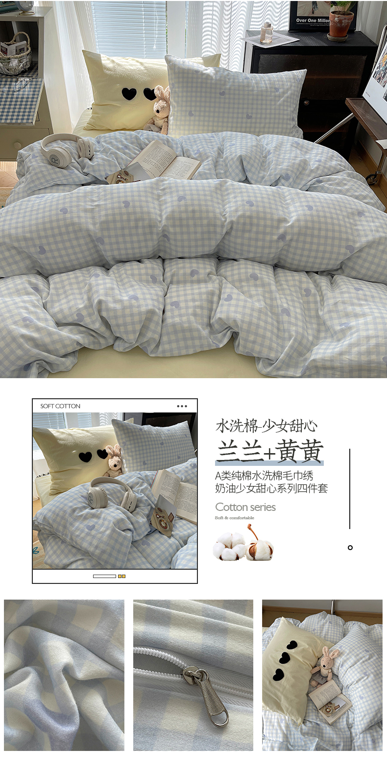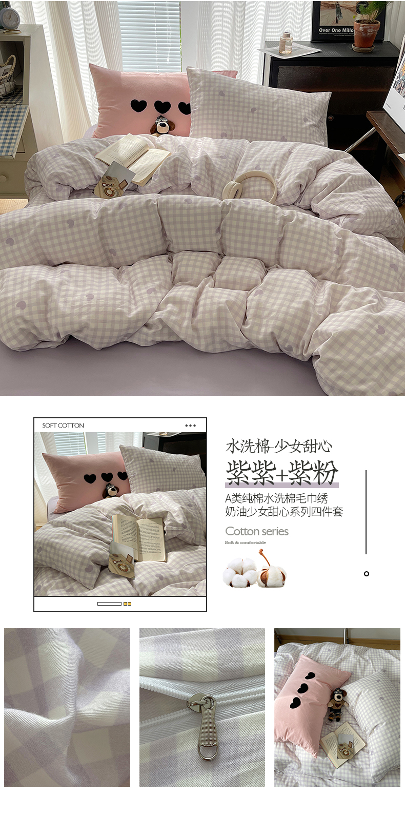 商品名称:(总)桃子家居 2024新款A类纯棉水洗棉毛巾绣奶油少女甜心系列学生四件套
