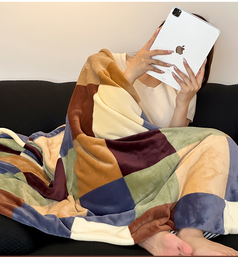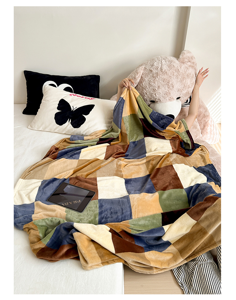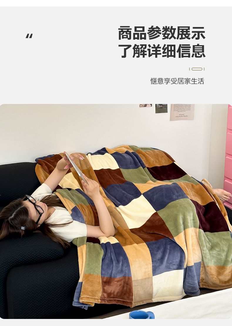 (总)桃喜 2024新款牛奶绒羊羔绒条纹系列盖绒毛毯午休毯多功能毛毯-场景二,多巴胺彩条,蓝咖条纹,栗子粉条纹,美式复古红蓝条,美式复古黄蓝条