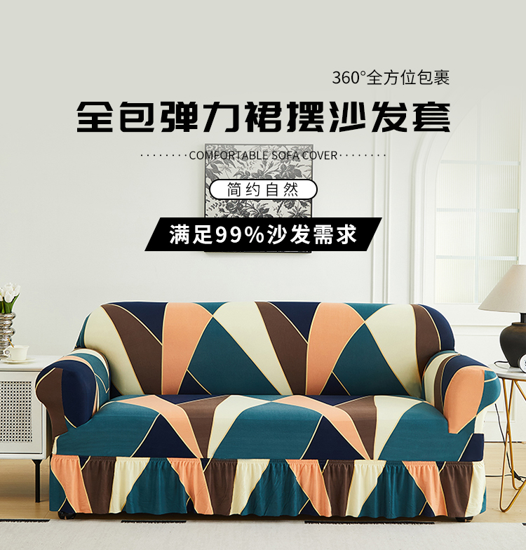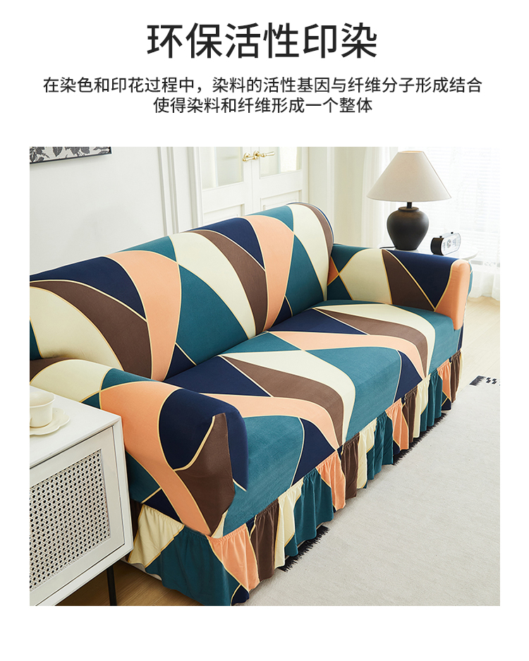 商品名称:逐日沙发套 2024新款牛奶丝印花裙摆沙发套 印花 裙摆-流金