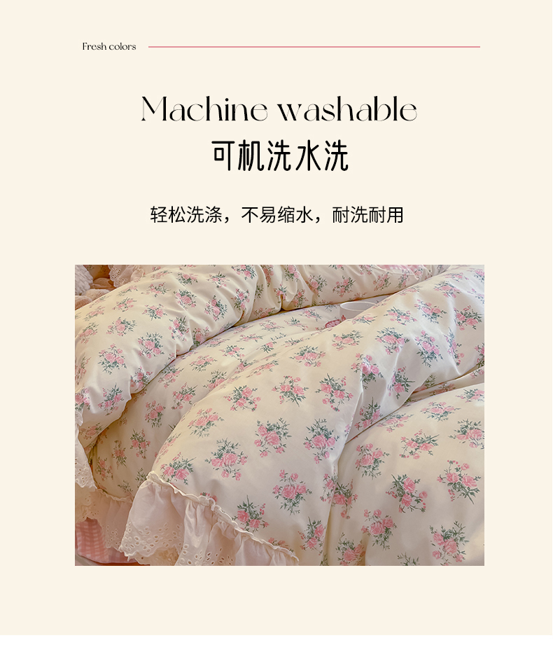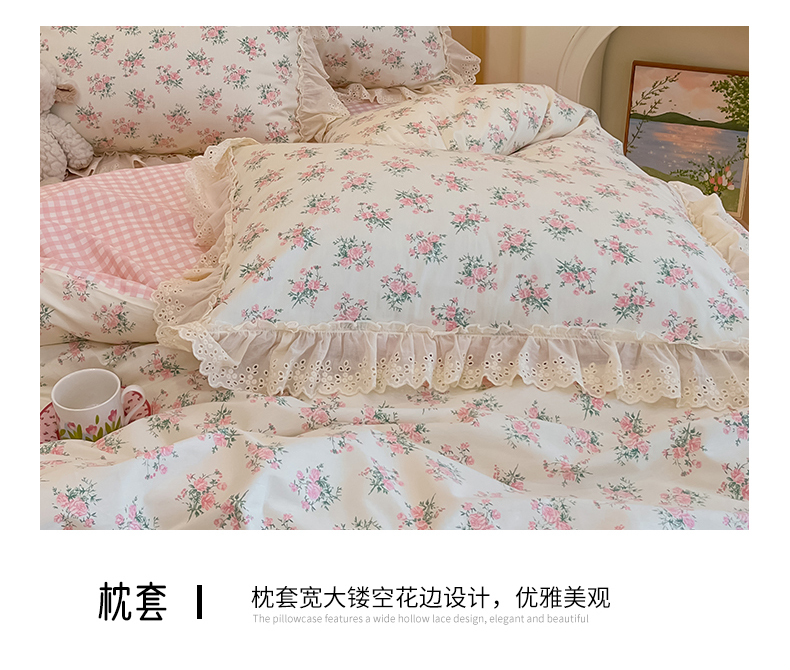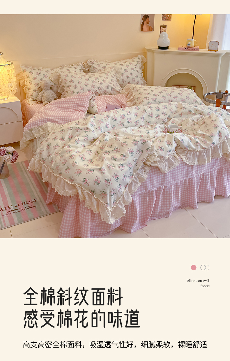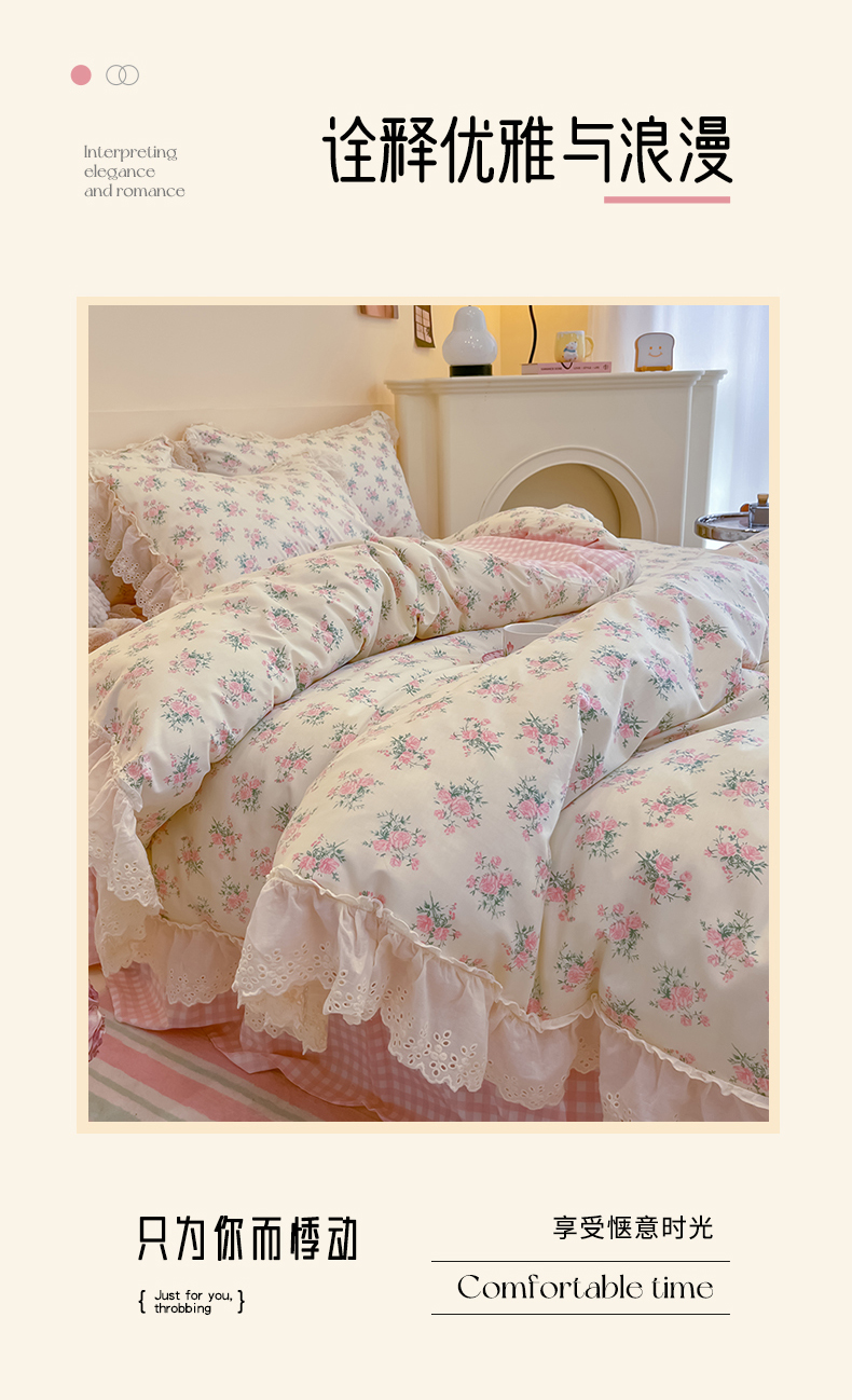 商品名称:金丝鸟家纺 2024新款韩式全棉镂空大花边公主风花卉系列四件套 花韵