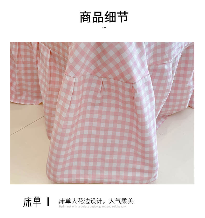 (总)金丝鸟家纺 2025新款全棉双层纱贝壳边四件套格子系列,复古棕格,轨迹绿格,黑格尔,红色格纹,怀秋豆沙格,七彩方格,青梅田格,塔思琦