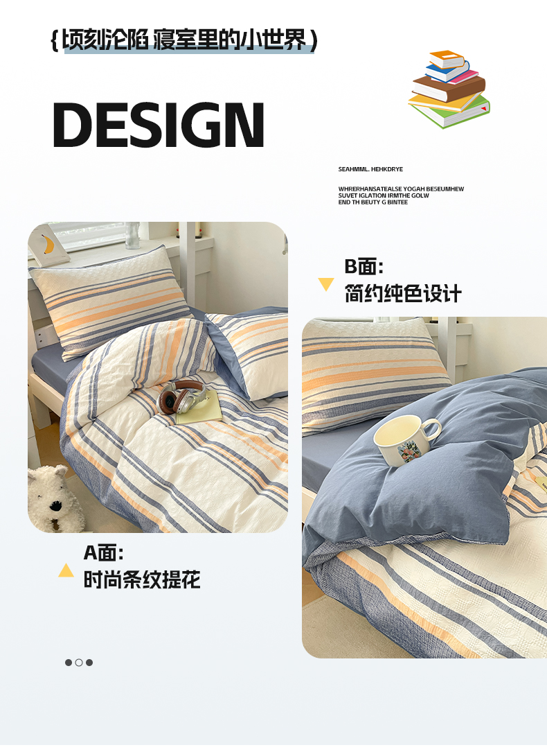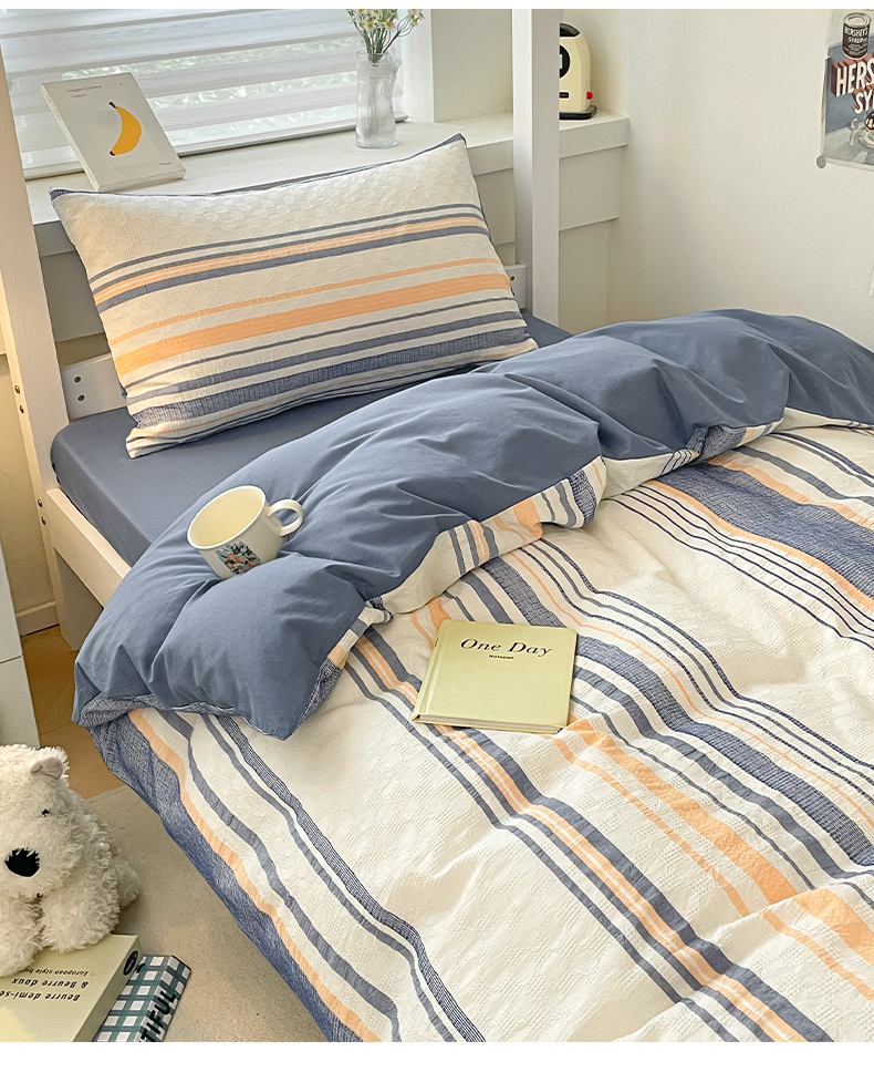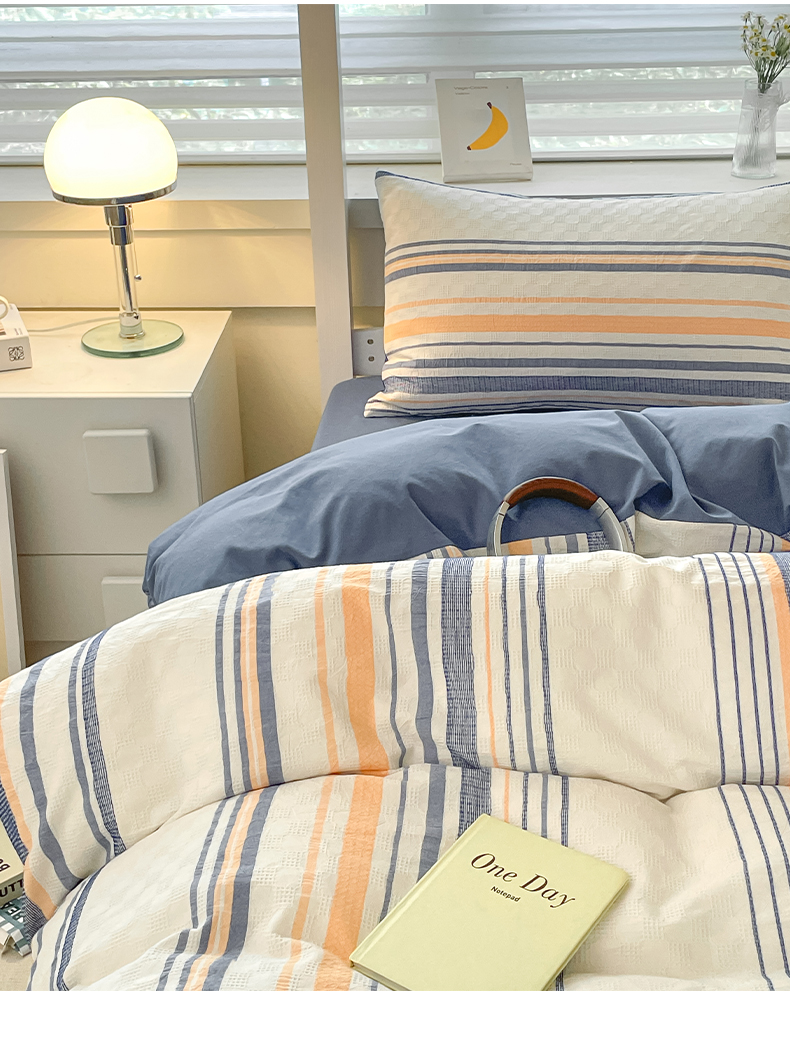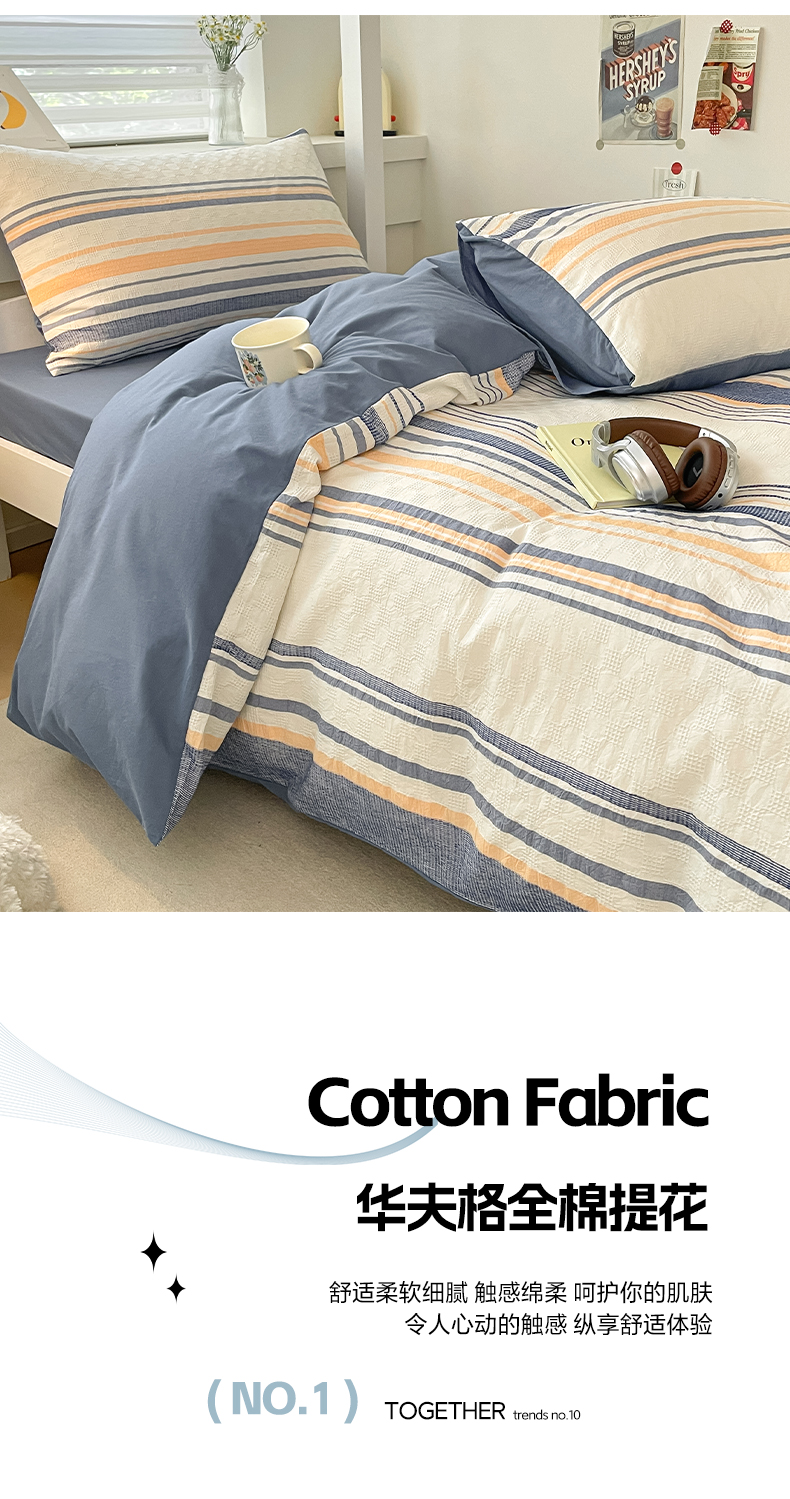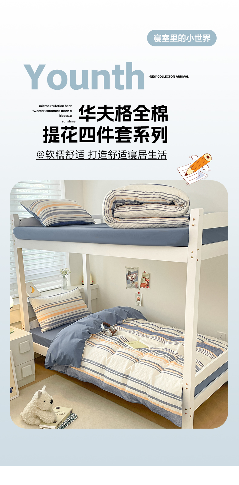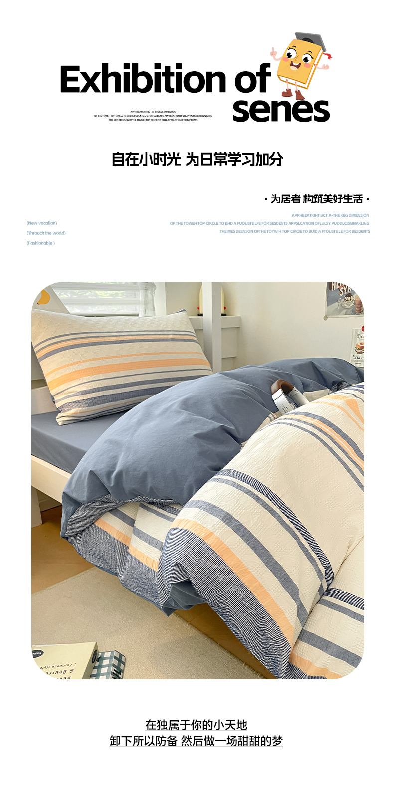 当前位置: 91家纺网 > 商品网购 > 床品套件 > 四件套 > 全棉普通四件套 > 雅居纺家纺 2024新款开学季全棉提花华夫格四件套-简希 简希-深蓝