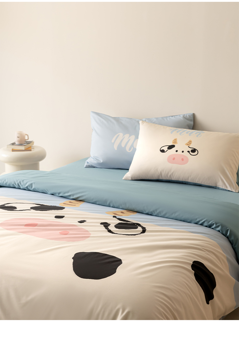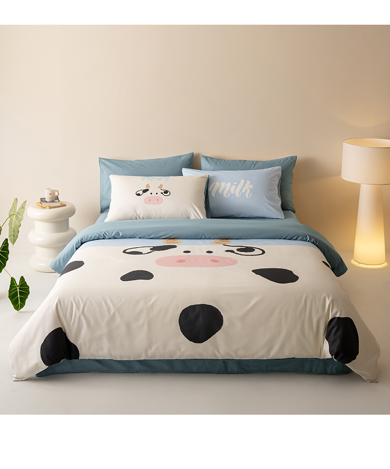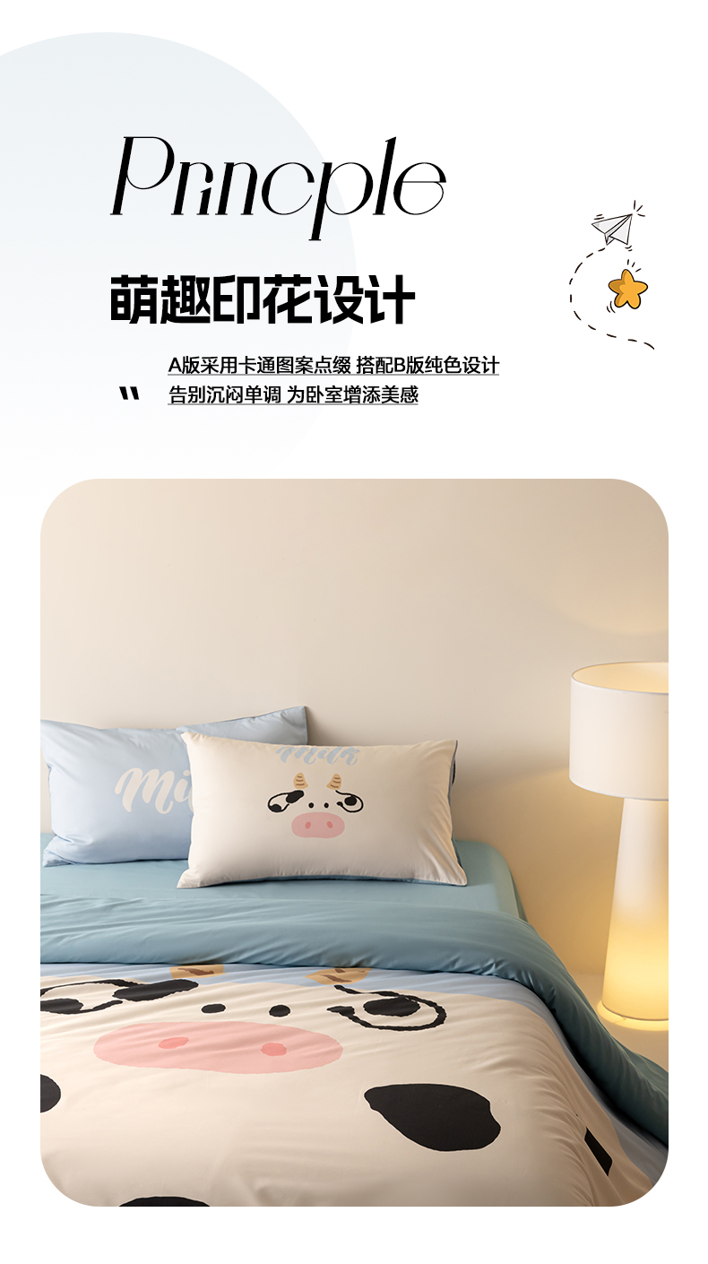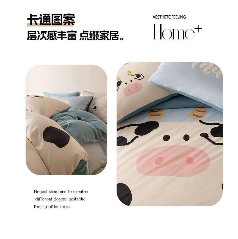 雅居纺家纺 2024新款全棉印花13372大版四件套 小牛牛