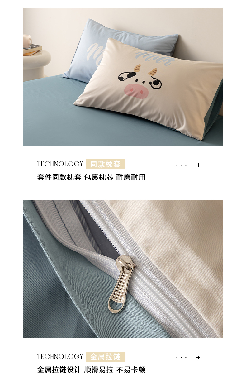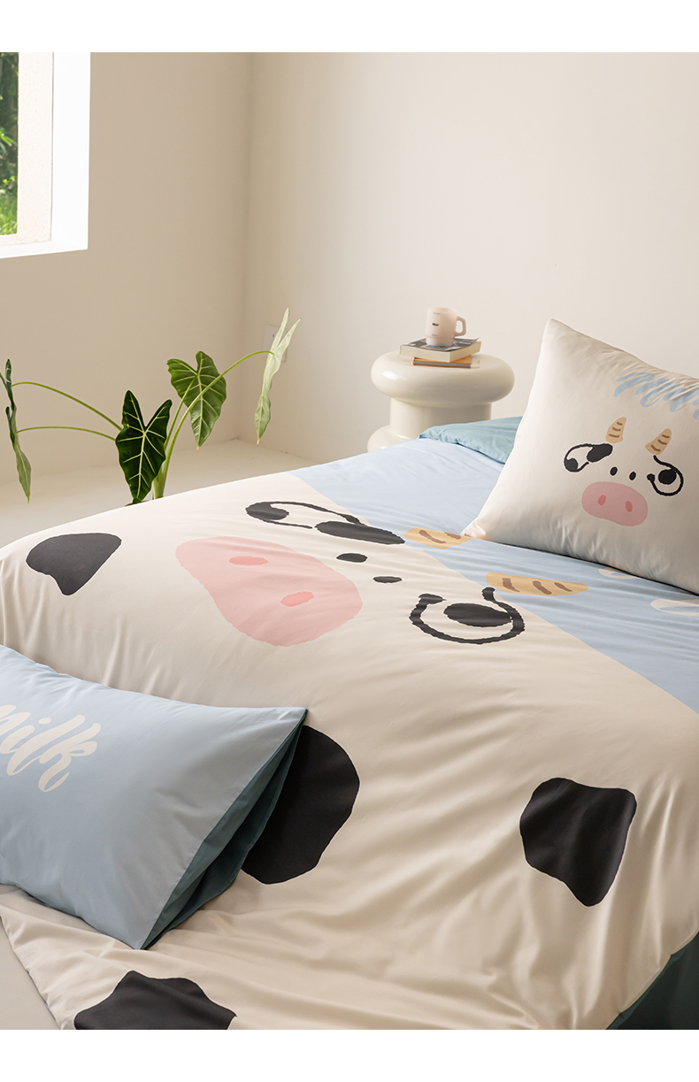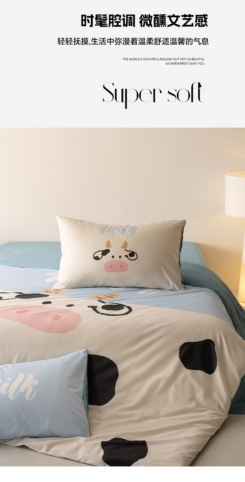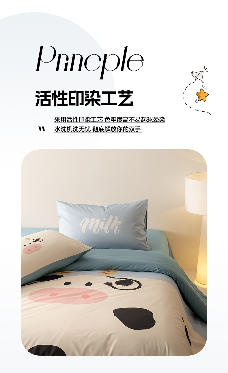 雅居纺家纺 2024新款全棉印花13372大版四件套 小牛牛