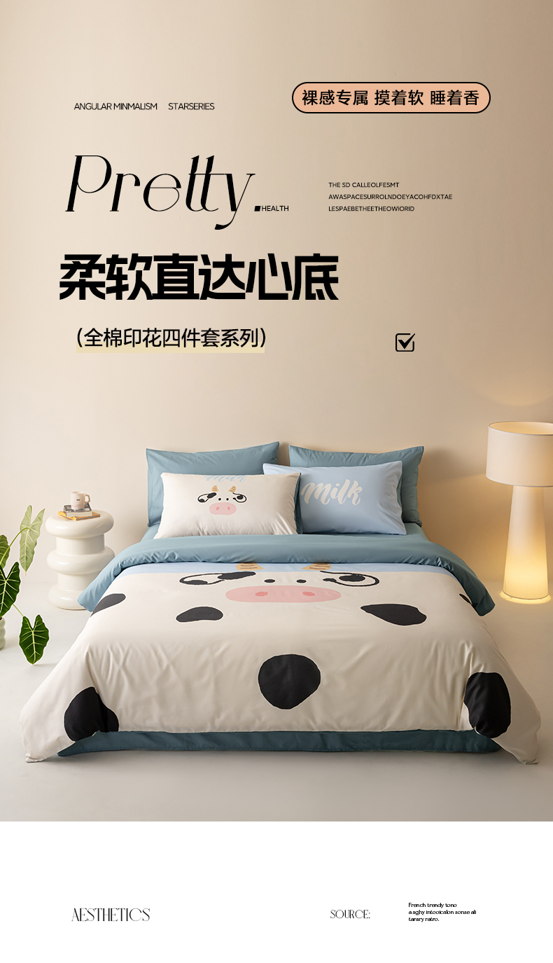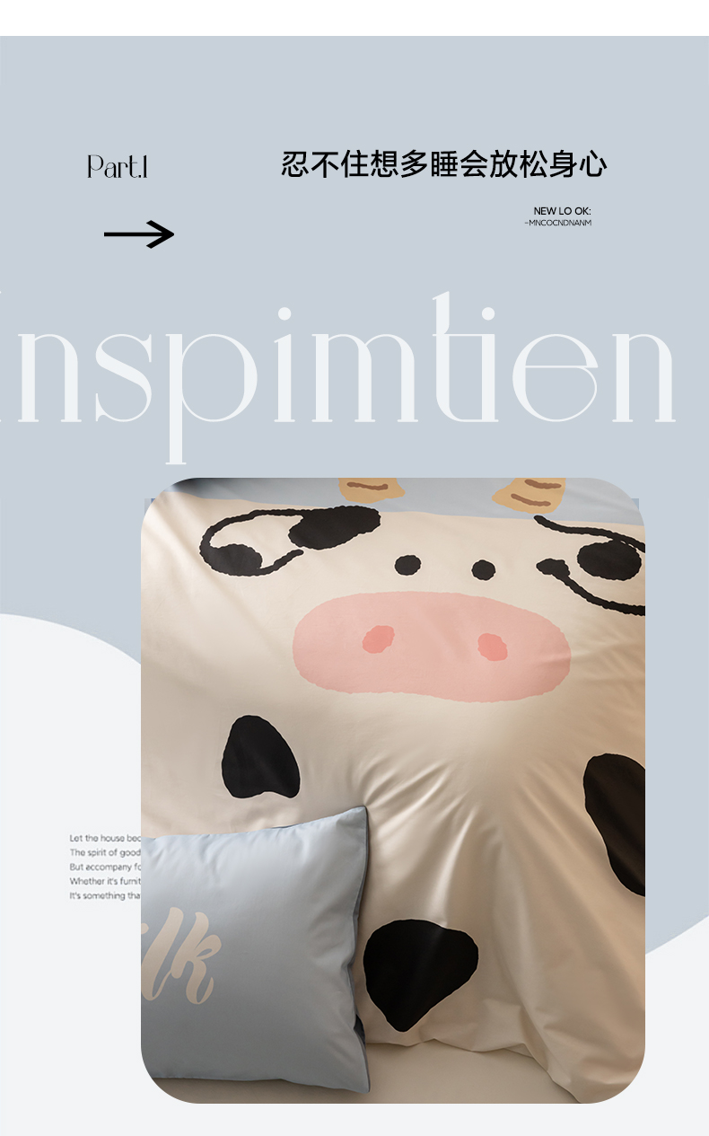 商品名称:雅居纺家纺 2024新款全棉印花13372大版四件套 小牛牛