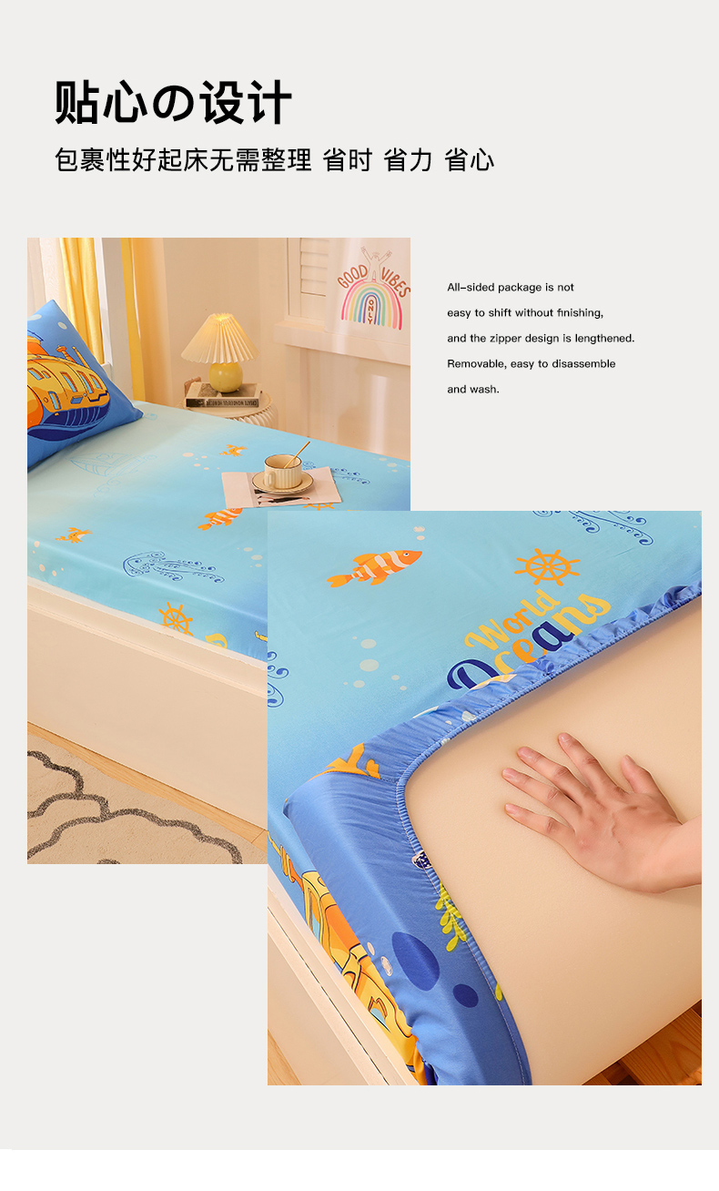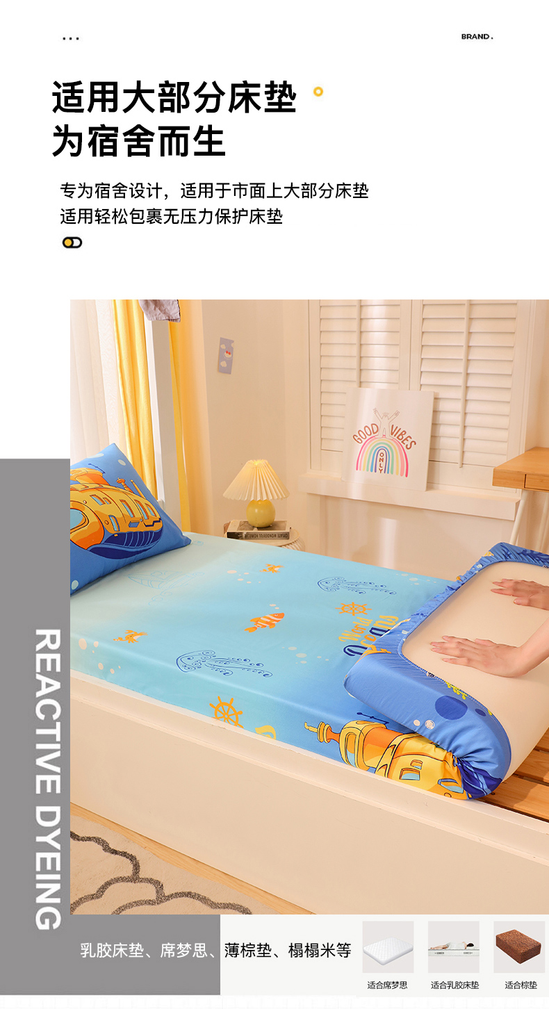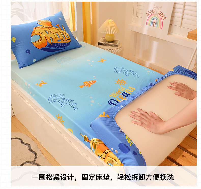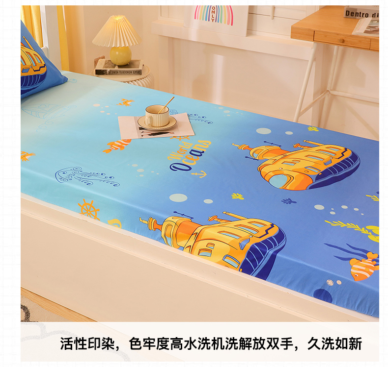 金鑫汇 2024新款全棉卡通印花学生床垫套床笠系列 海底探秘