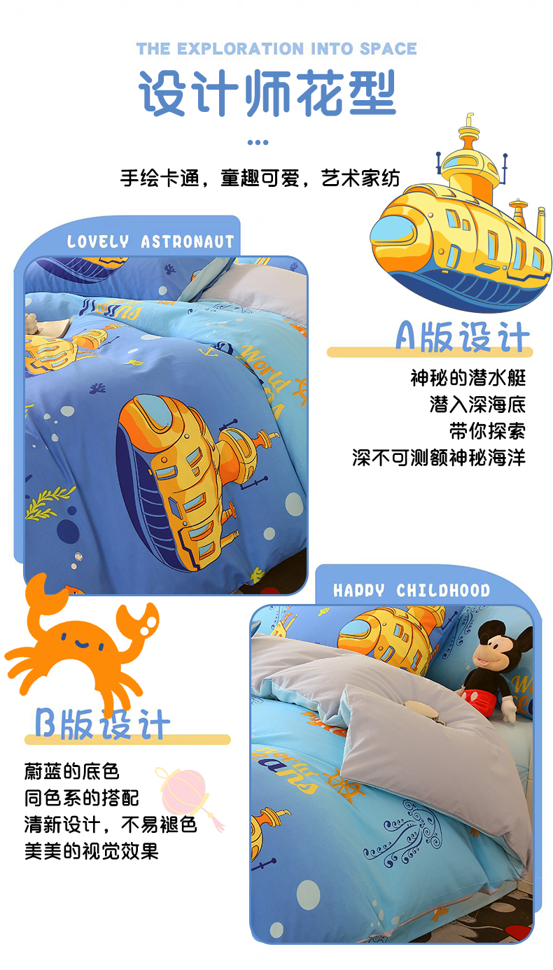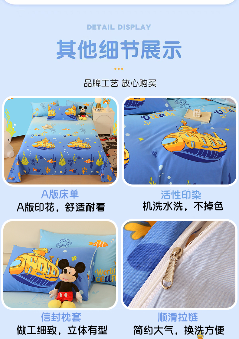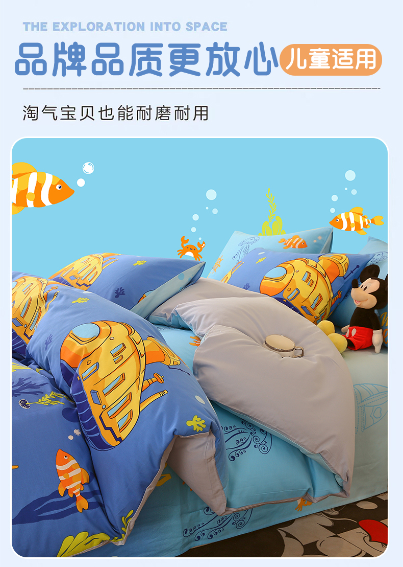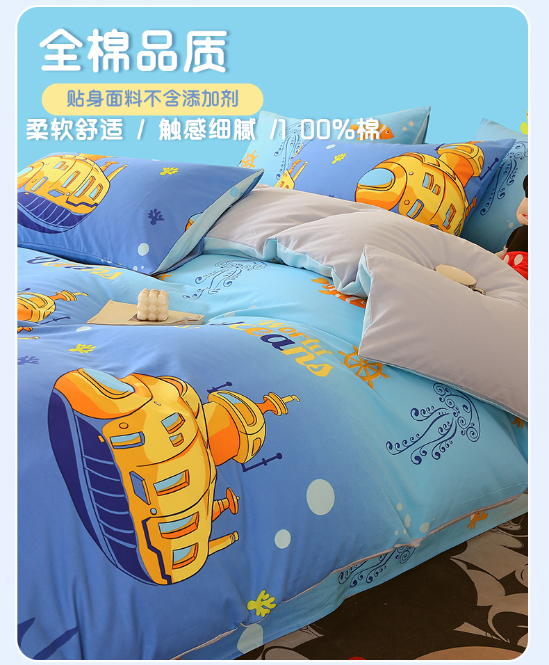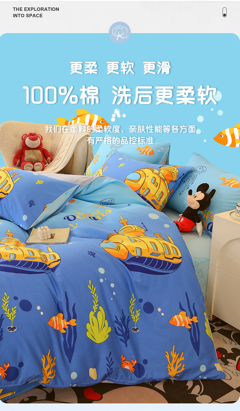 当前位置: 91家纺网 > 商品网购 > 床品套件 > 三件套 > 金鑫汇家纺 2024新款全棉印花四件套 海底探秘