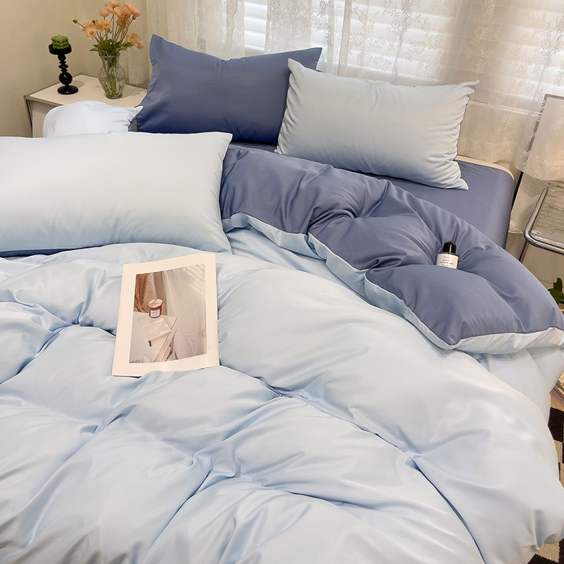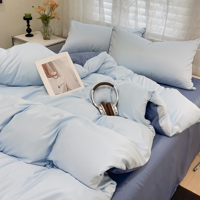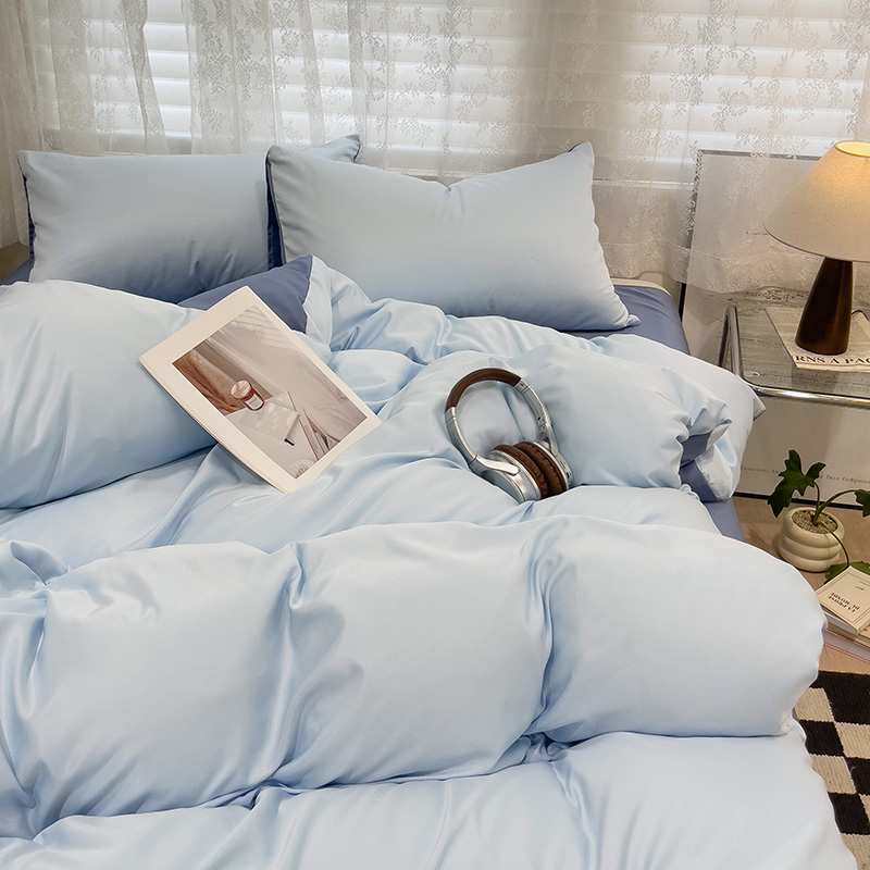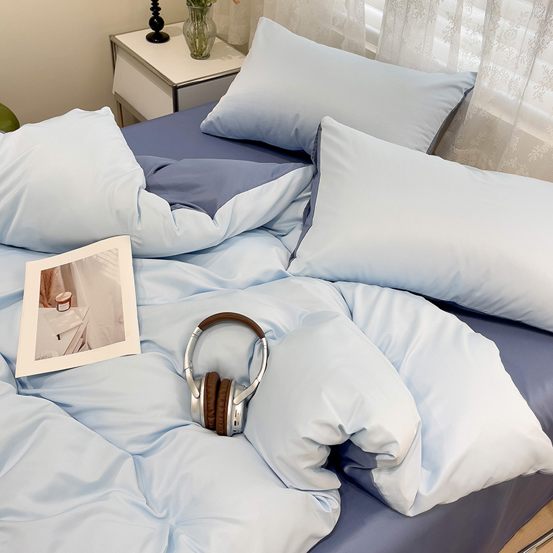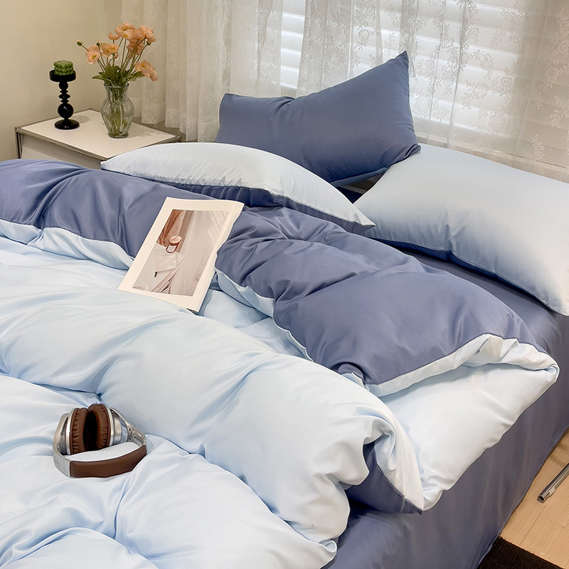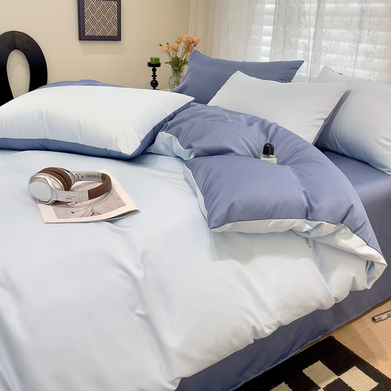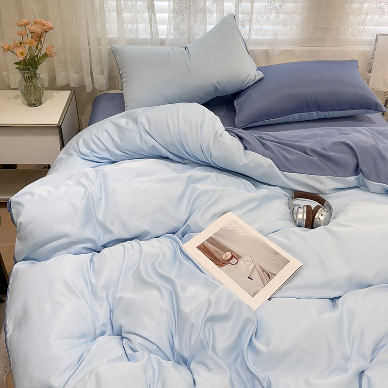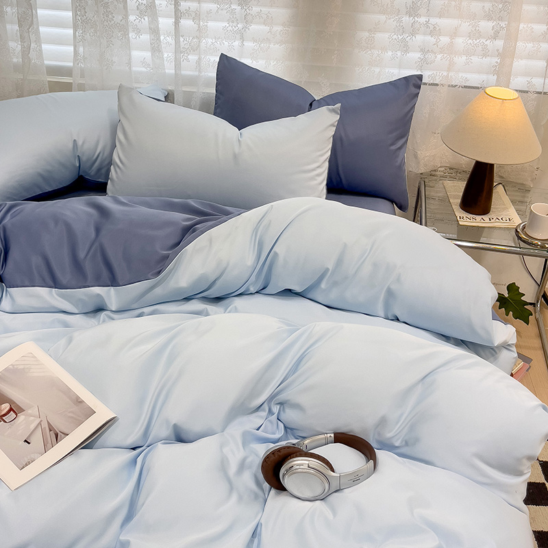 当前位置: 91家纺网 > 商品网购 > 床品套件 > 四件套 > 其它四件套 > 维娜斯家纺 2024新款水洗冰丝轻奢款纯色拼色系列四件套 海青+牛仔蓝